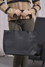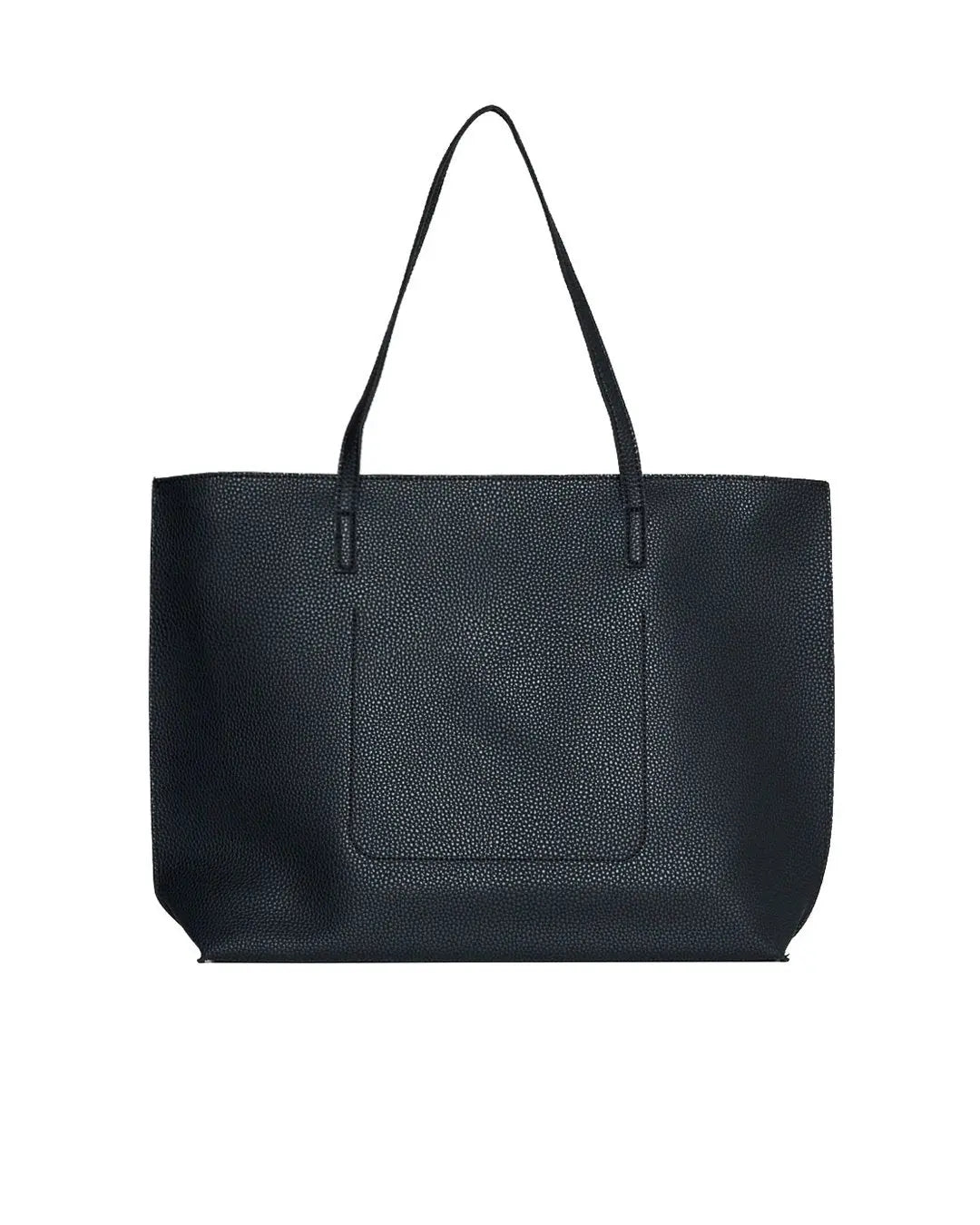 Borsa shopper large in ecopelle a grana con logo sul davanti NERO