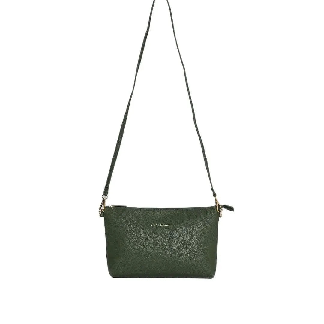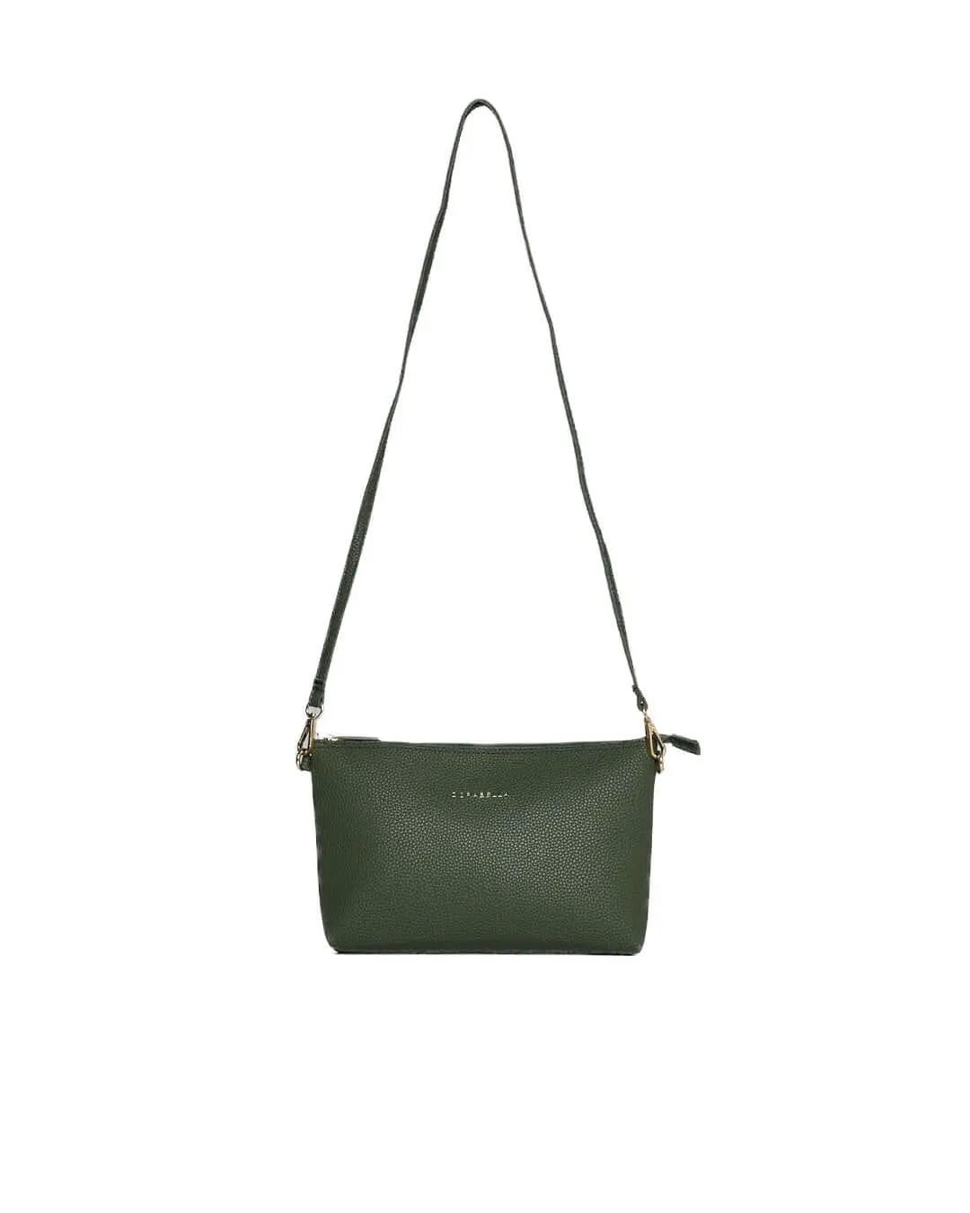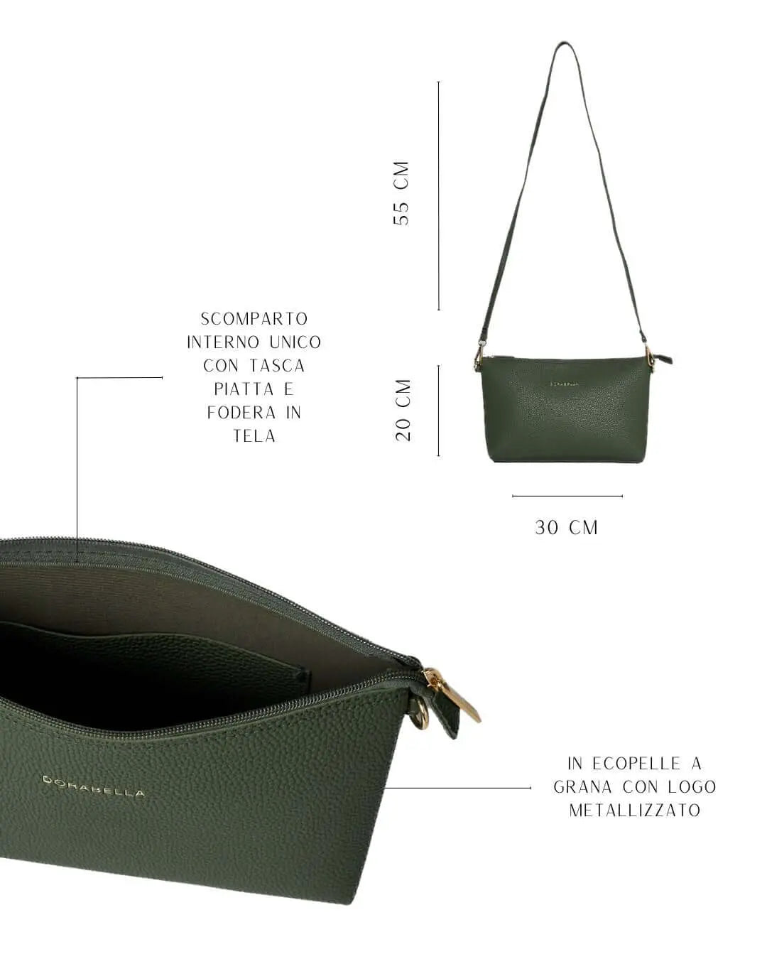 Borsa a tracolla Easy smart in ecopelle a grana con logo sul davanti VERDE MILITARE