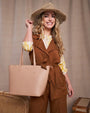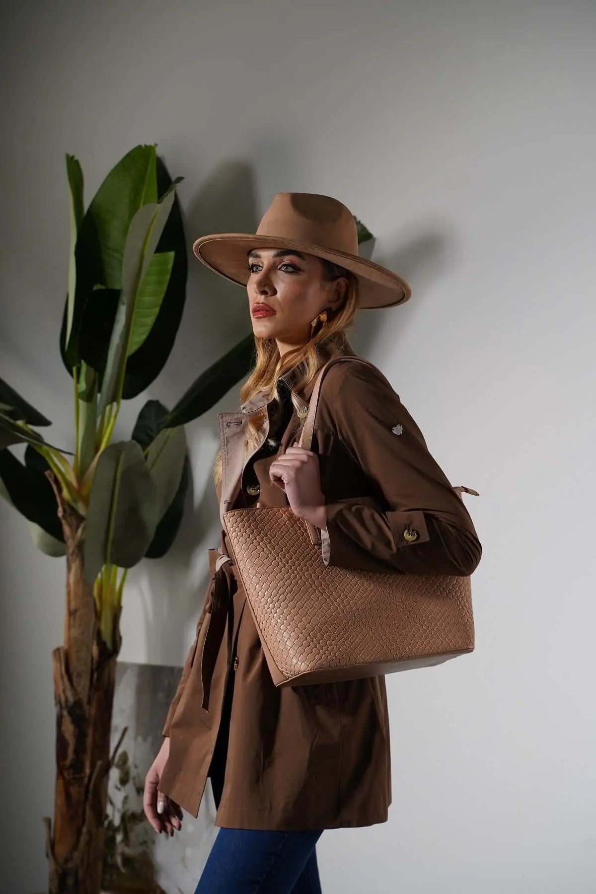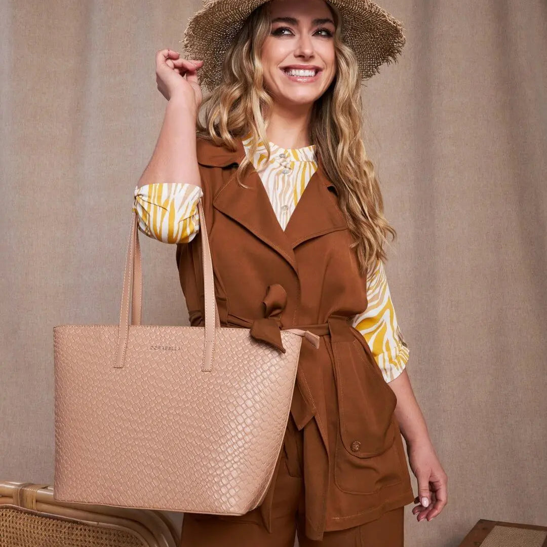 Borsa shopper media in ecopelle con motivo ad intreccio BEIGE