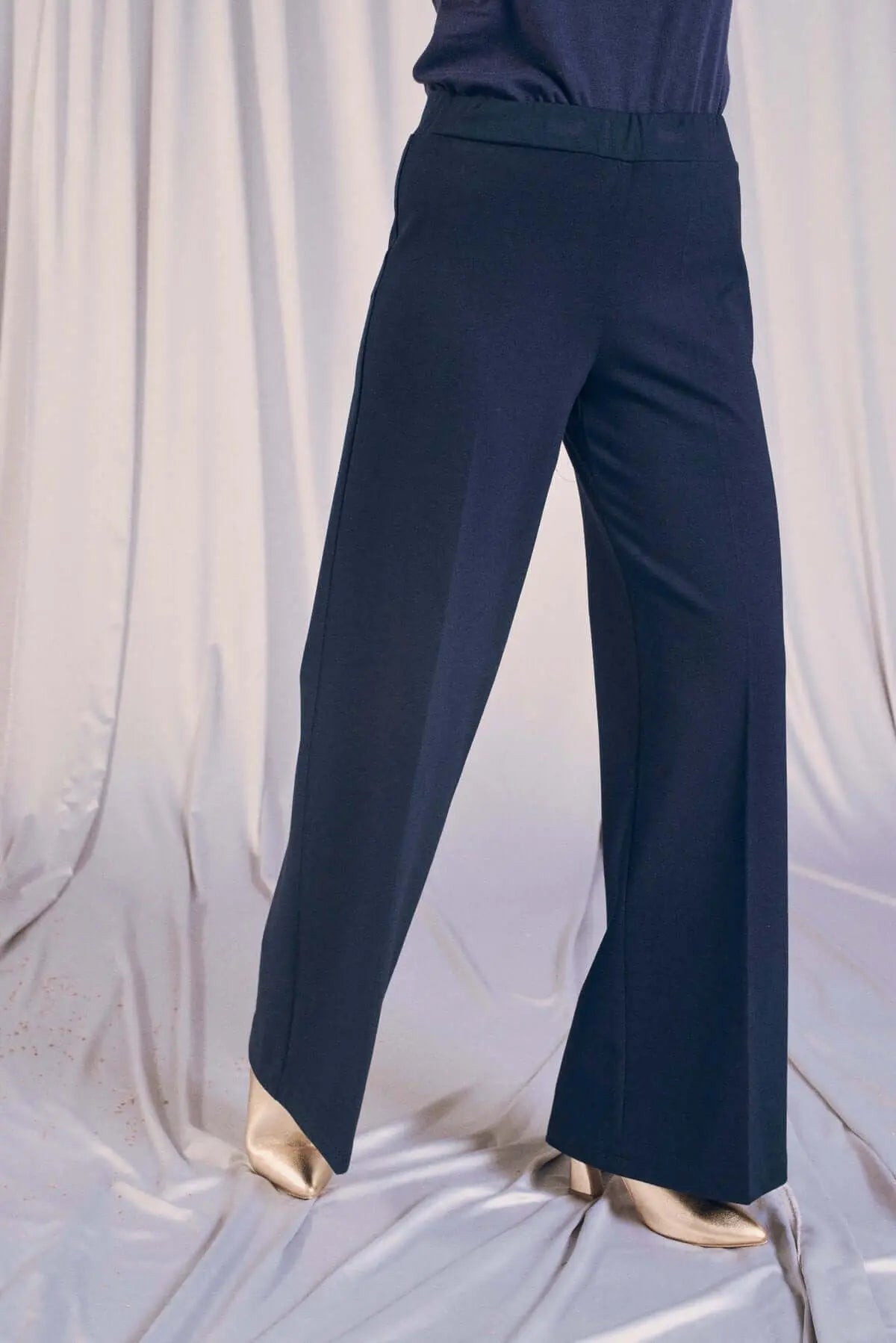 Eleganza smart, taglio a palazzo : non ti stancherai mai di indossarli da mattina a sera. Tessuto stretch in punto milano di viscosa, indossali con basic pull.