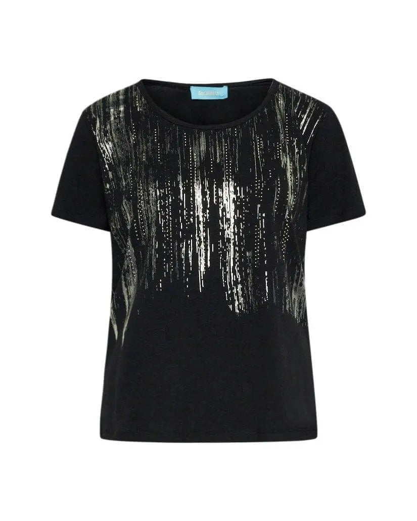 T-shirt in jersey di cotone elasticizzato con stampa e borchie NERO