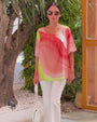 Geometric patterned blouse with crew neck and gathered collar PEACH