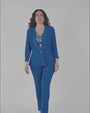 A structured styling defines the elegant line of this single-breasted jacket, in cady with a front basque. Without lapels and with lurex piping along the neckline.