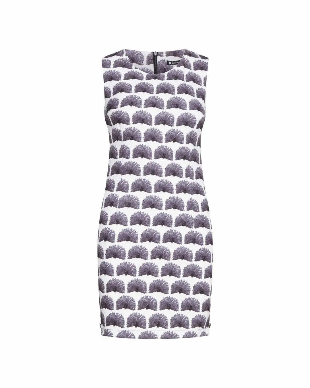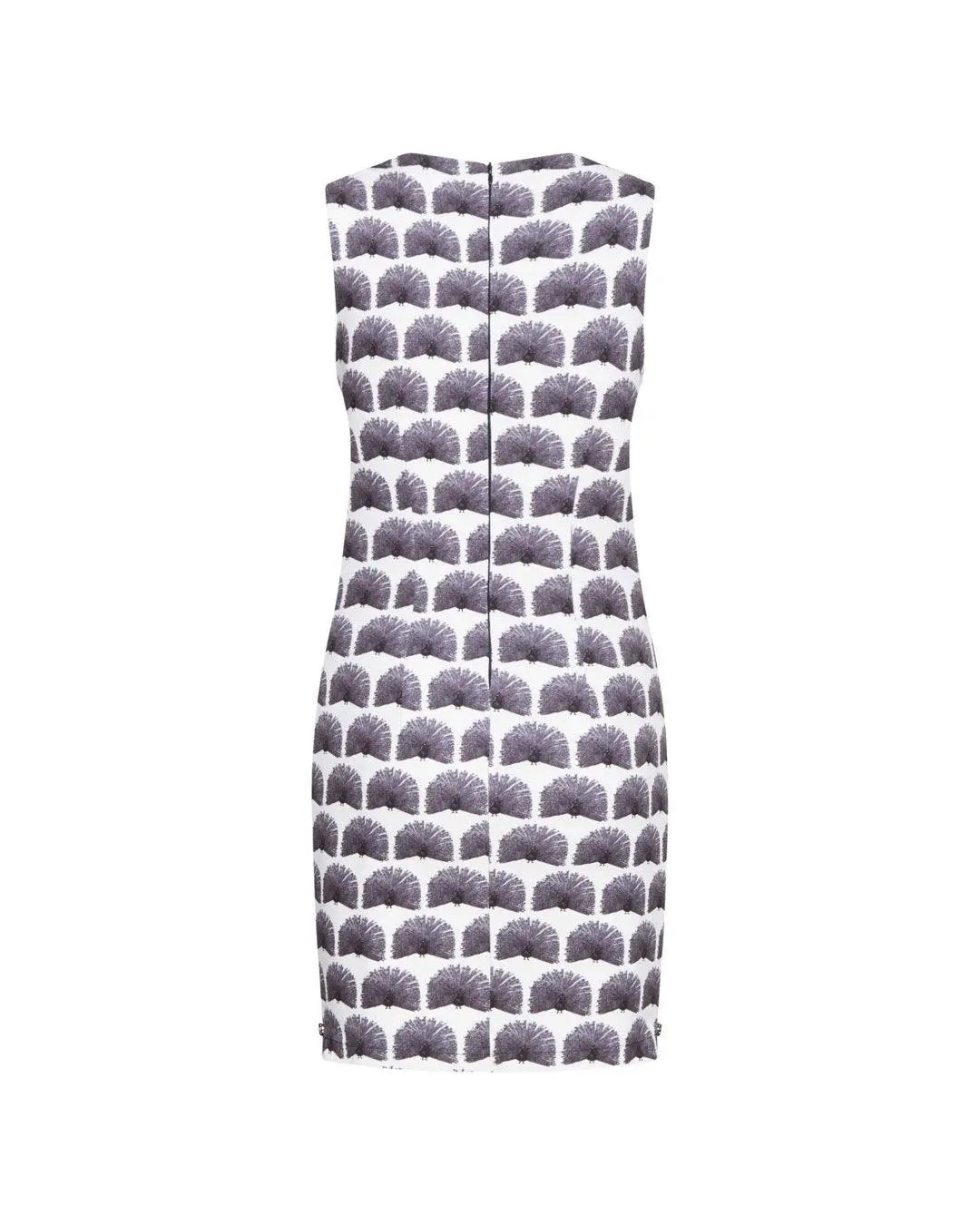 WHITE-BLACK peacock pattern sheath dress