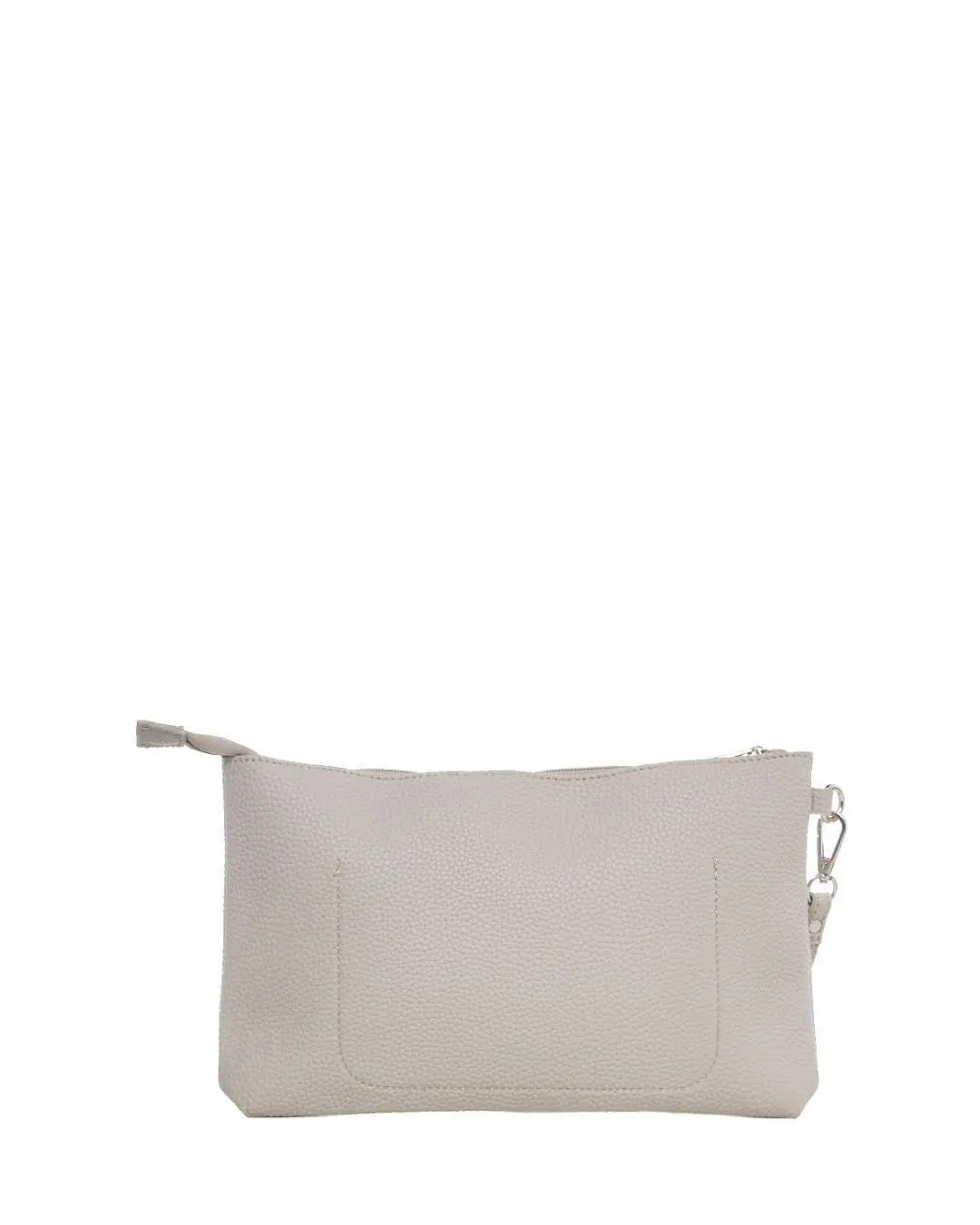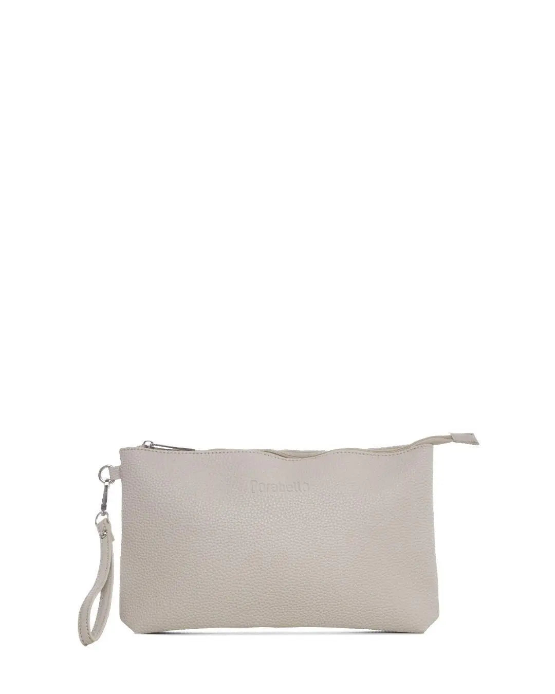 Grained eco-leather clutch with logo on the front and ICE wrist strap