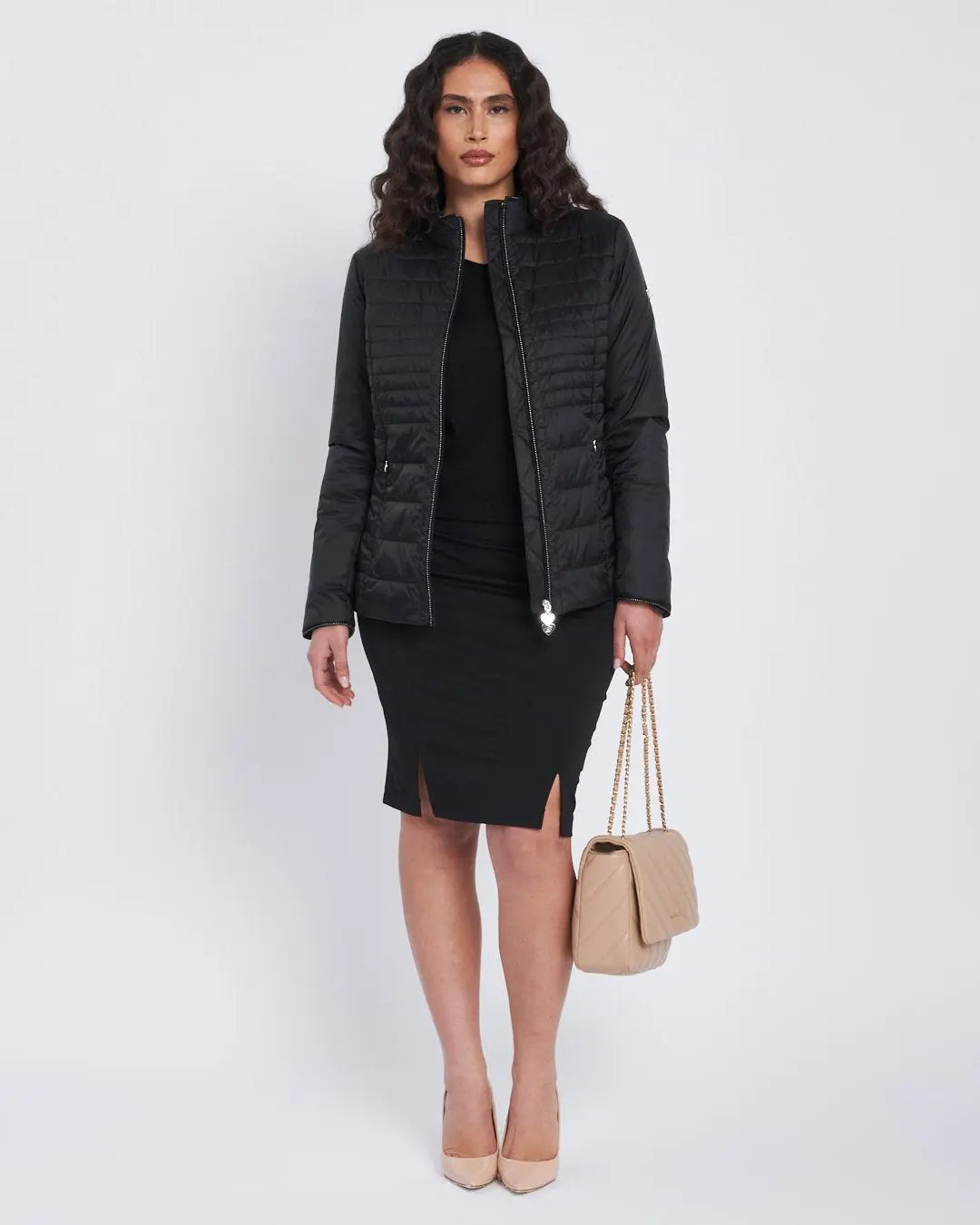 The model is 1.75m tall and wears size M