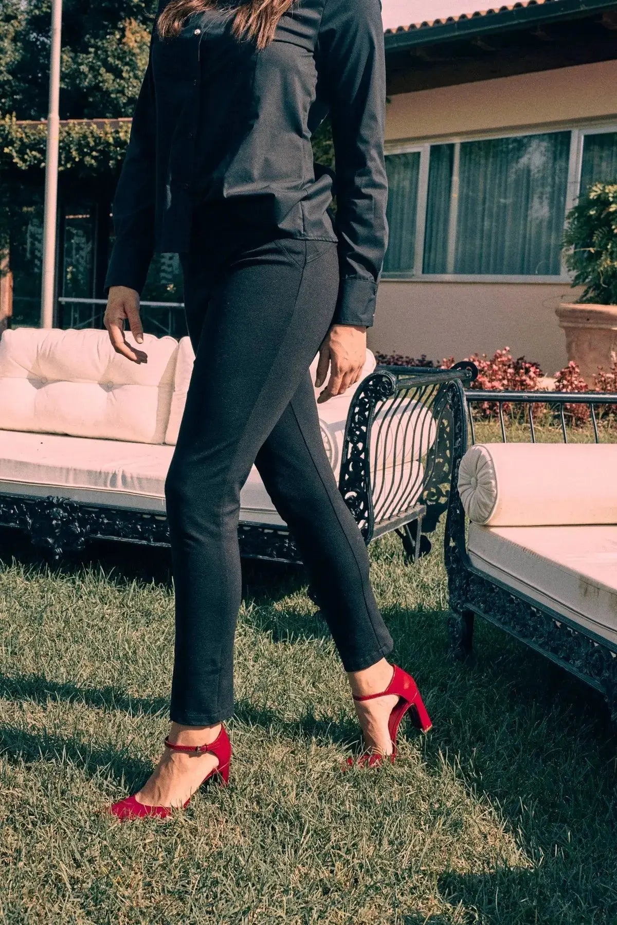Slim viscose trousers with back yoke BLACK
