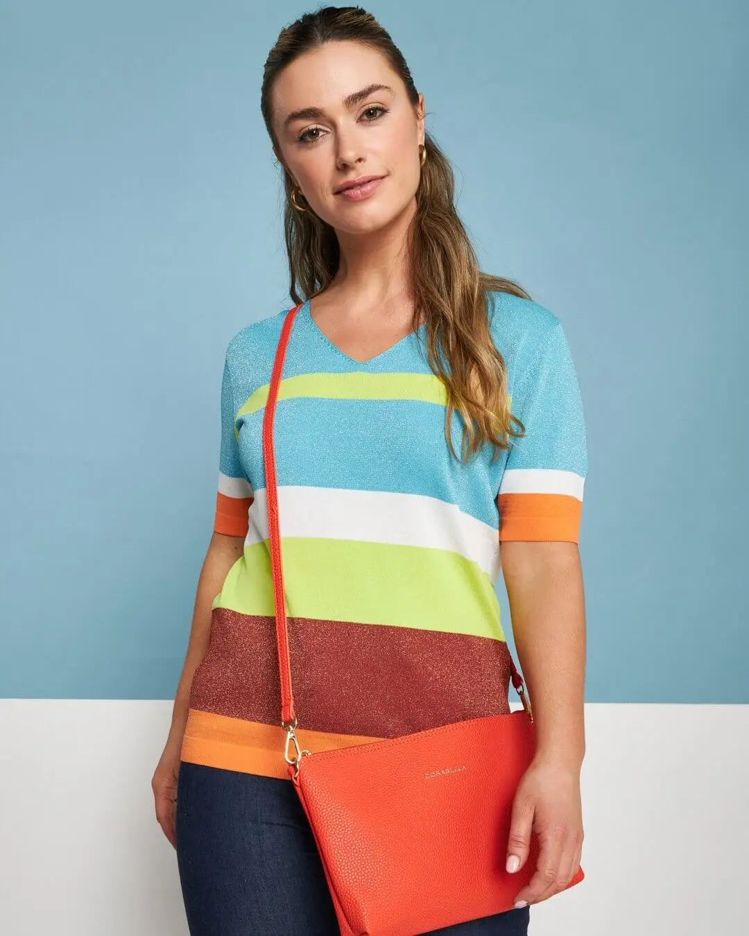 Easy smart shoulder bag in grained eco-leather with logo on the front PAPAVERO