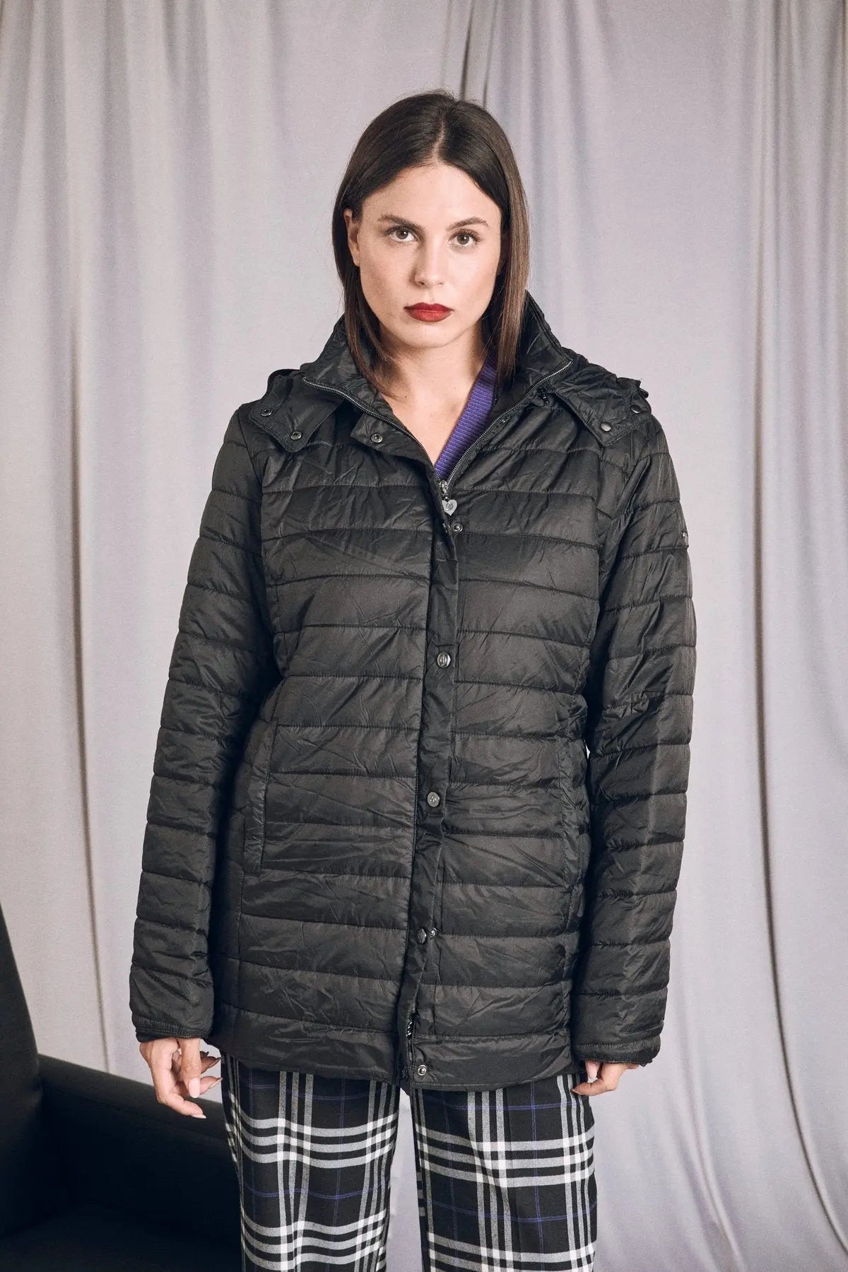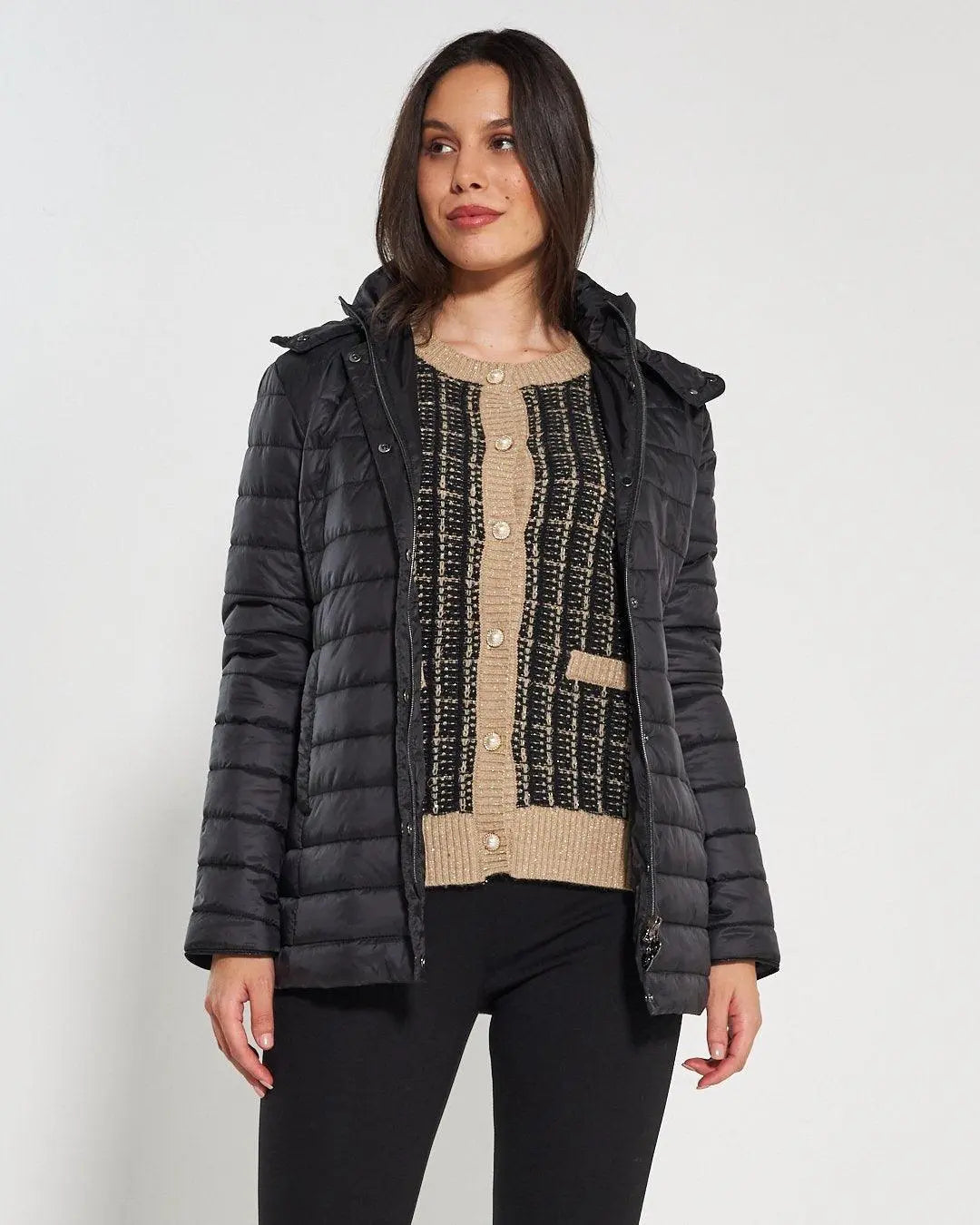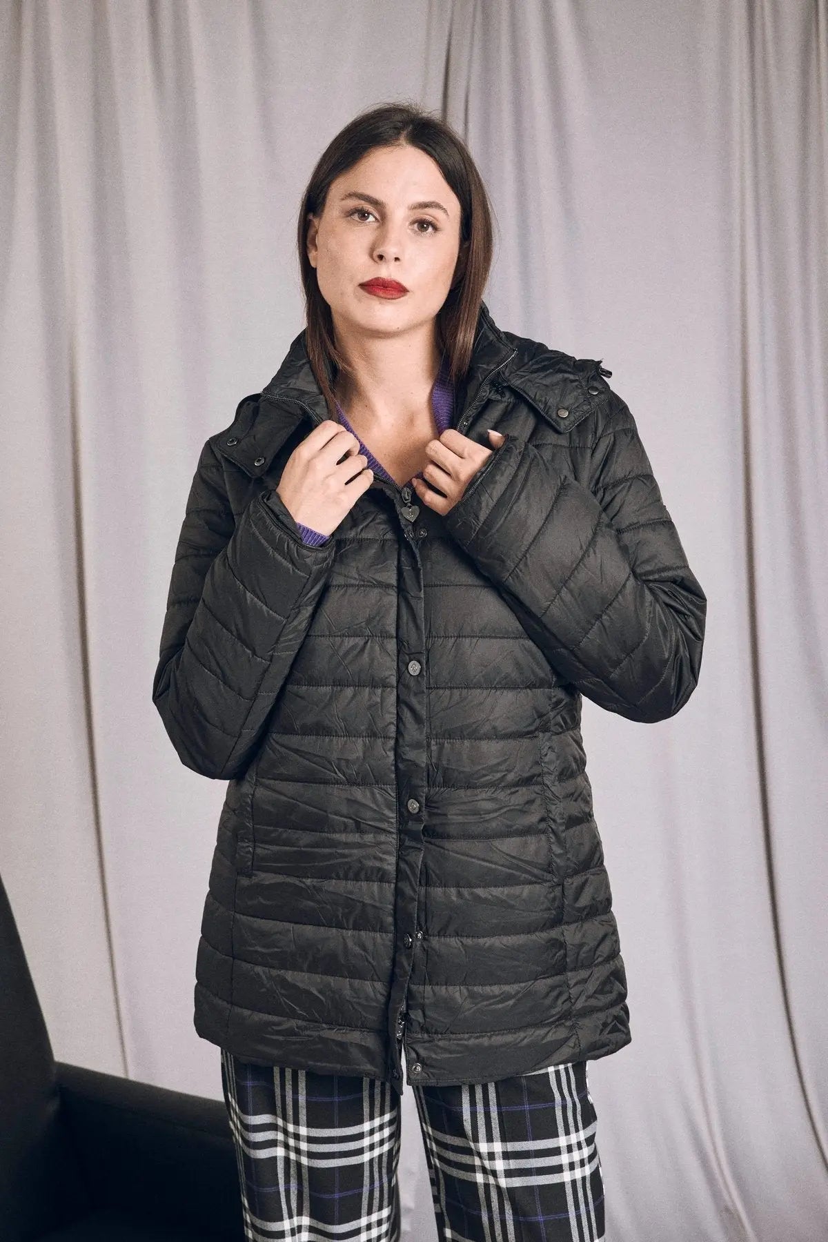 Lightweight Quilted Nylon Down Jacket with Hood BLACK