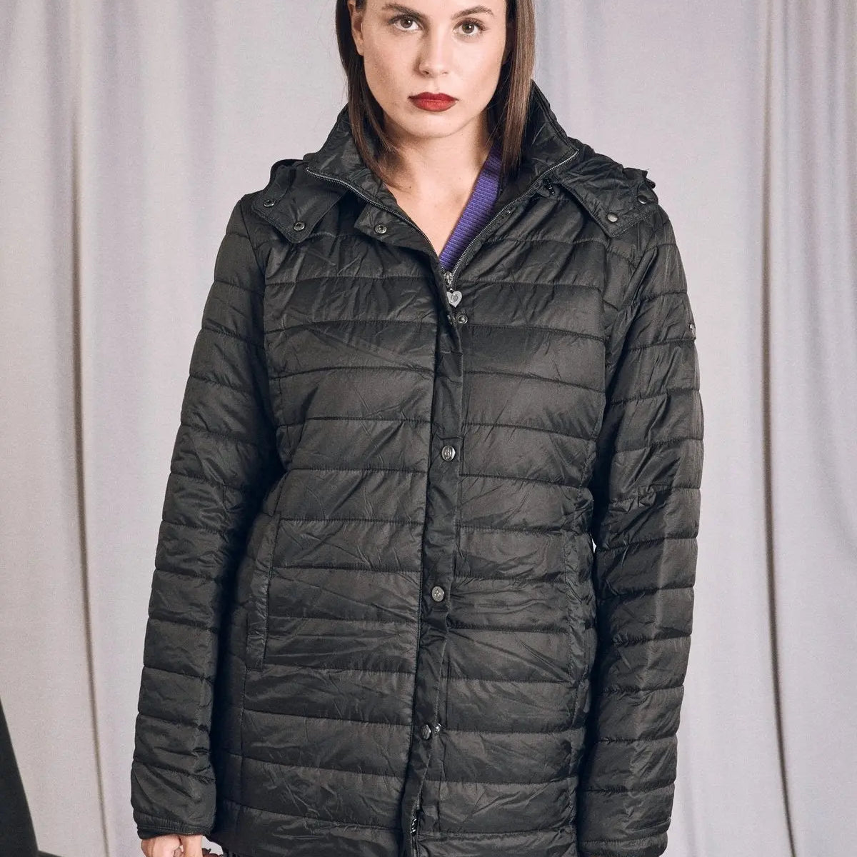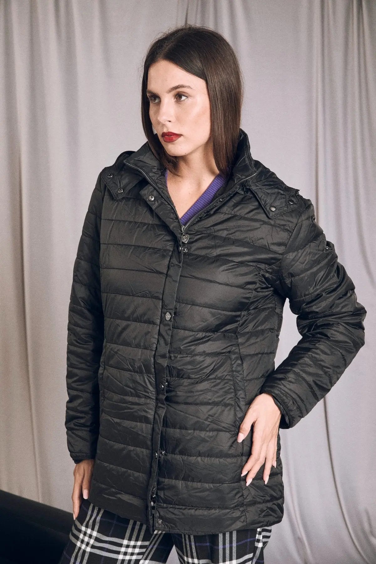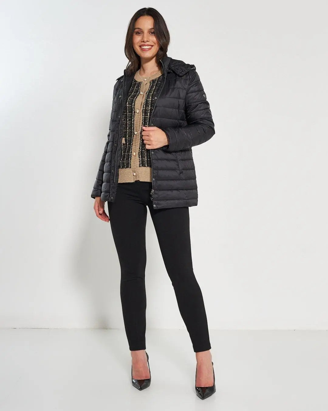 Lightweight Quilted Nylon Down Jacket with Hood BLACK