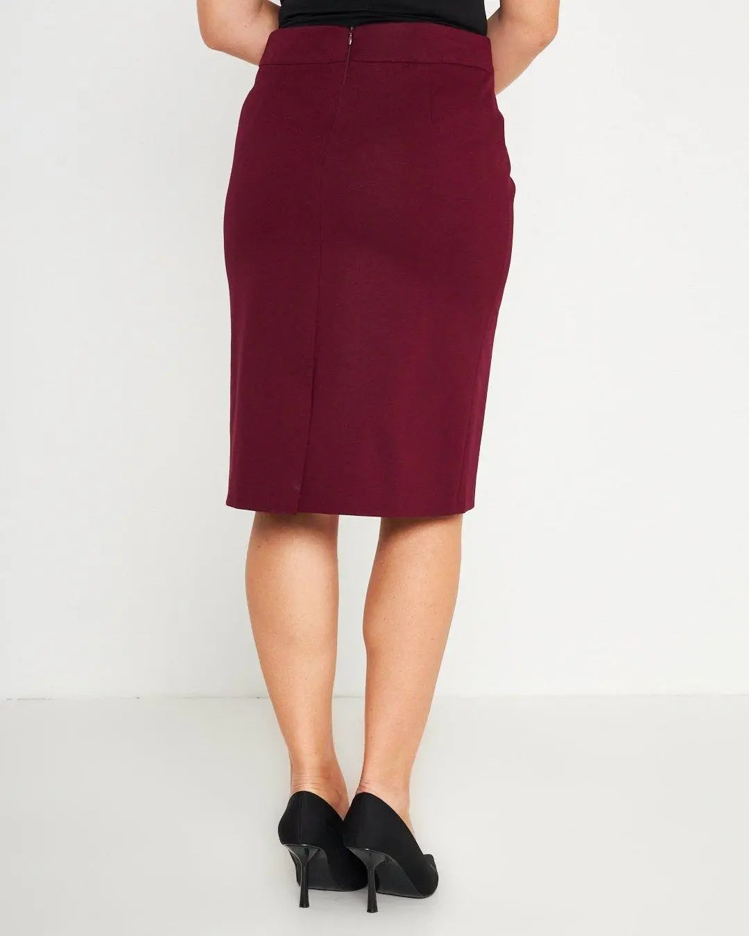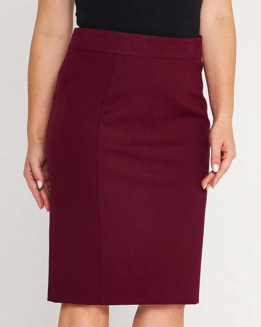 Pencil skirt with elasticated waist and front nervures WINE