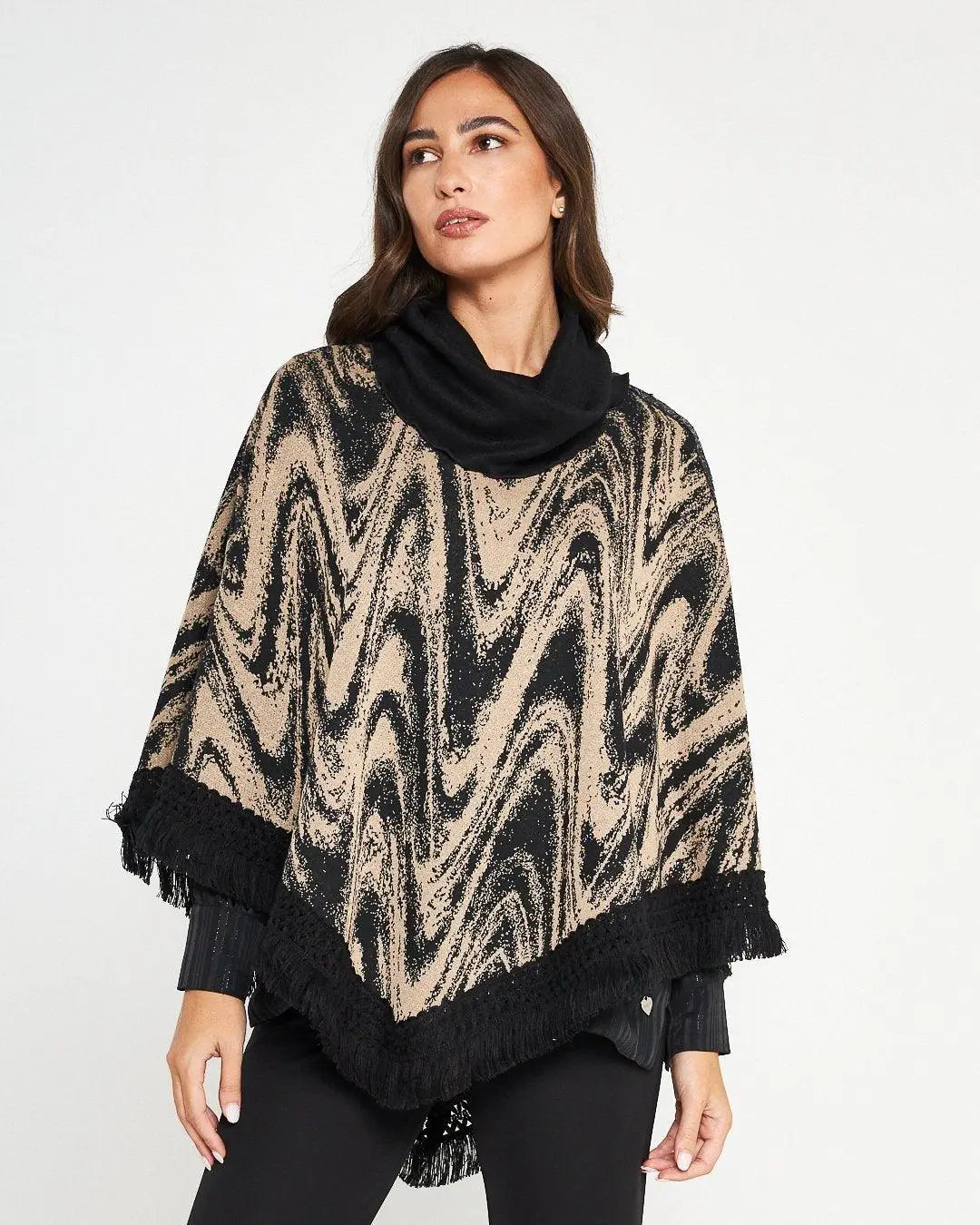 BLACK jacquard poncho