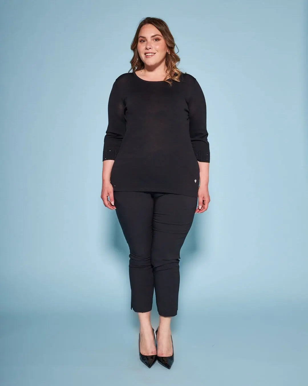 Crewneck sweater in viscose blend yarn with rhinestones BLACK