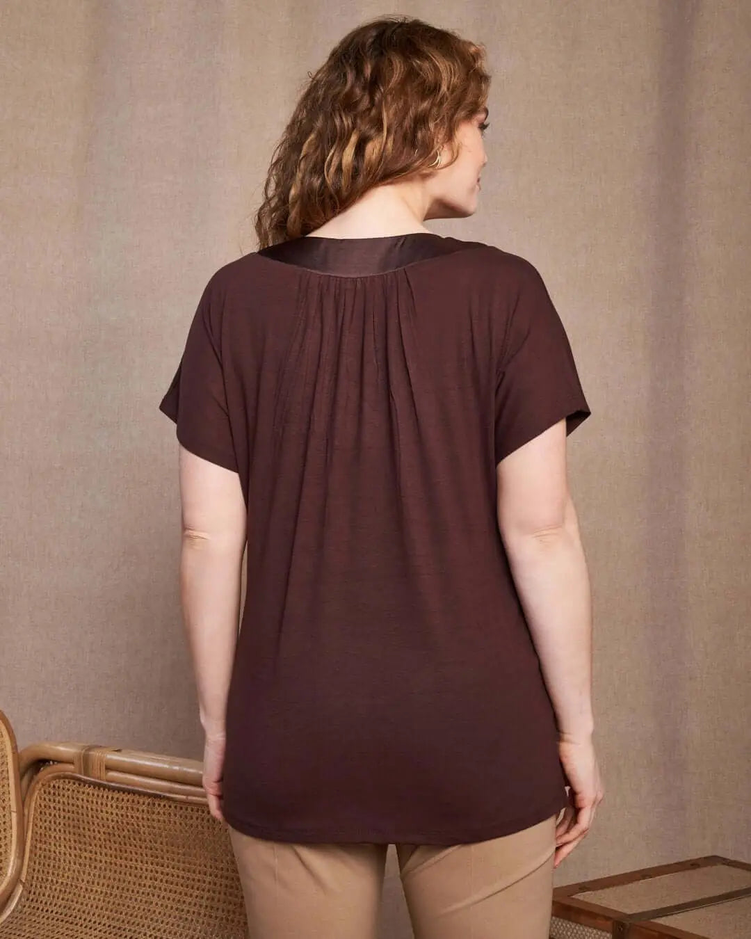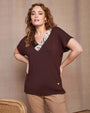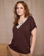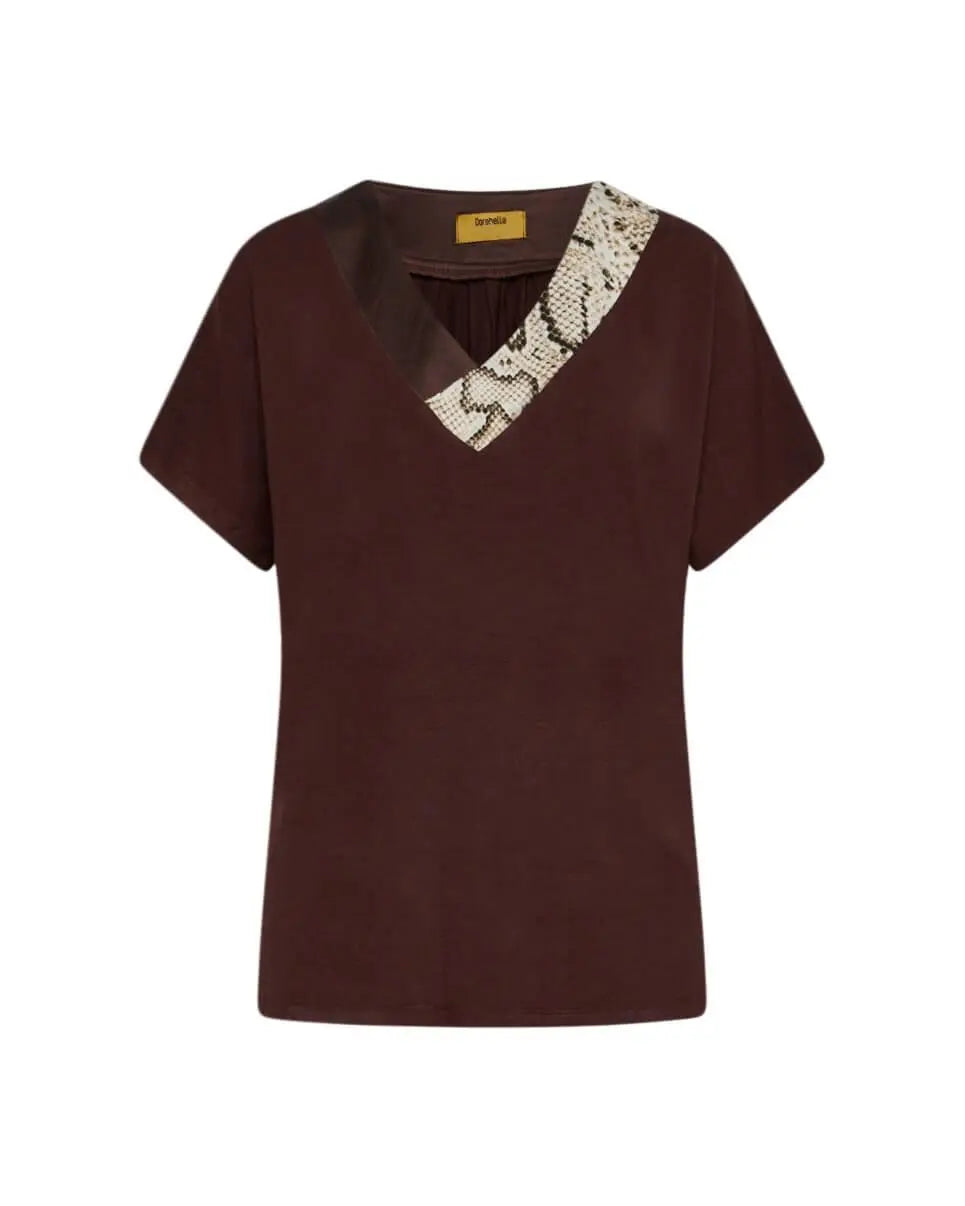 Stretch viscose jersey kimono T-shirt with V-neck and animal print CACAO