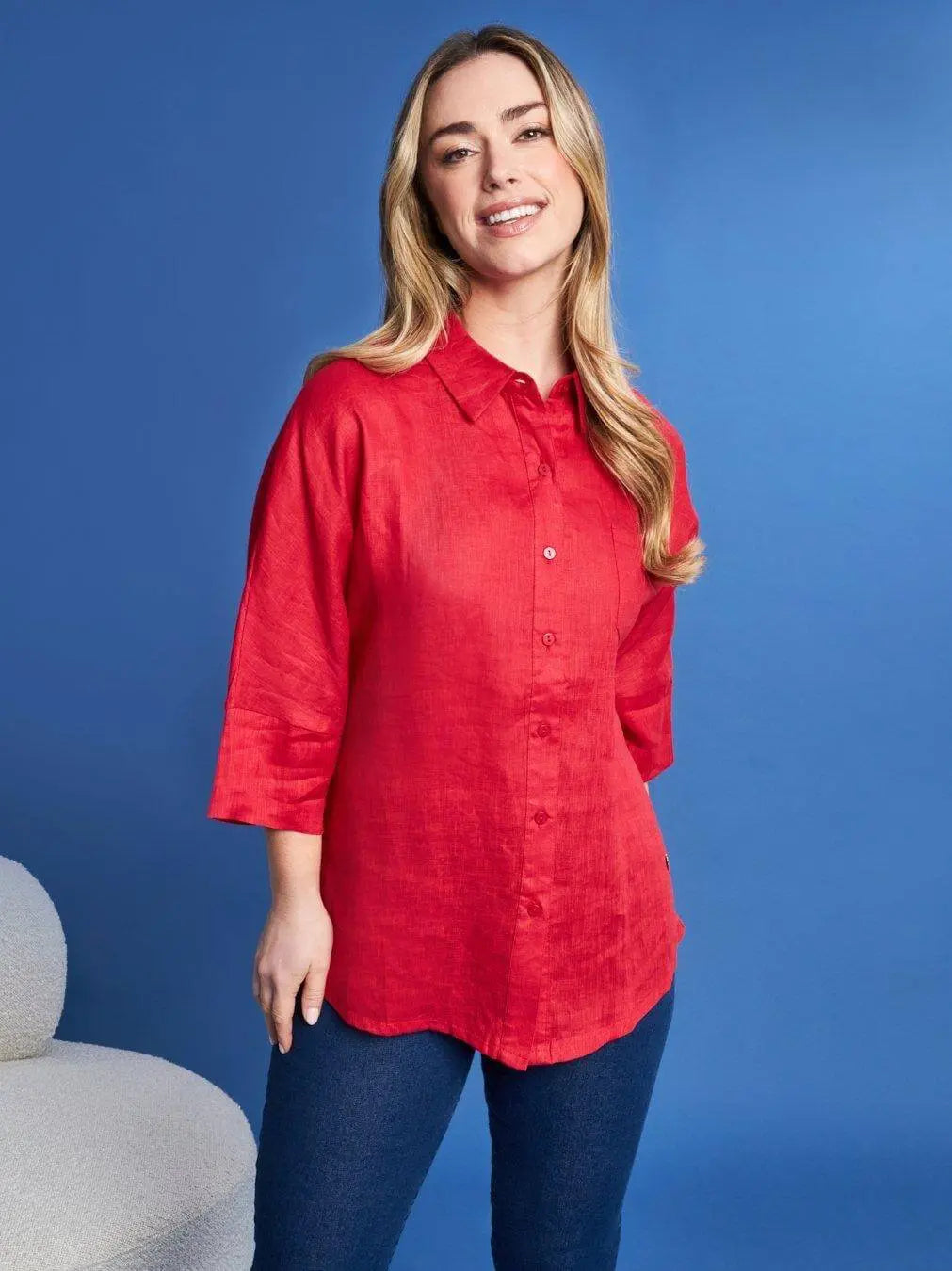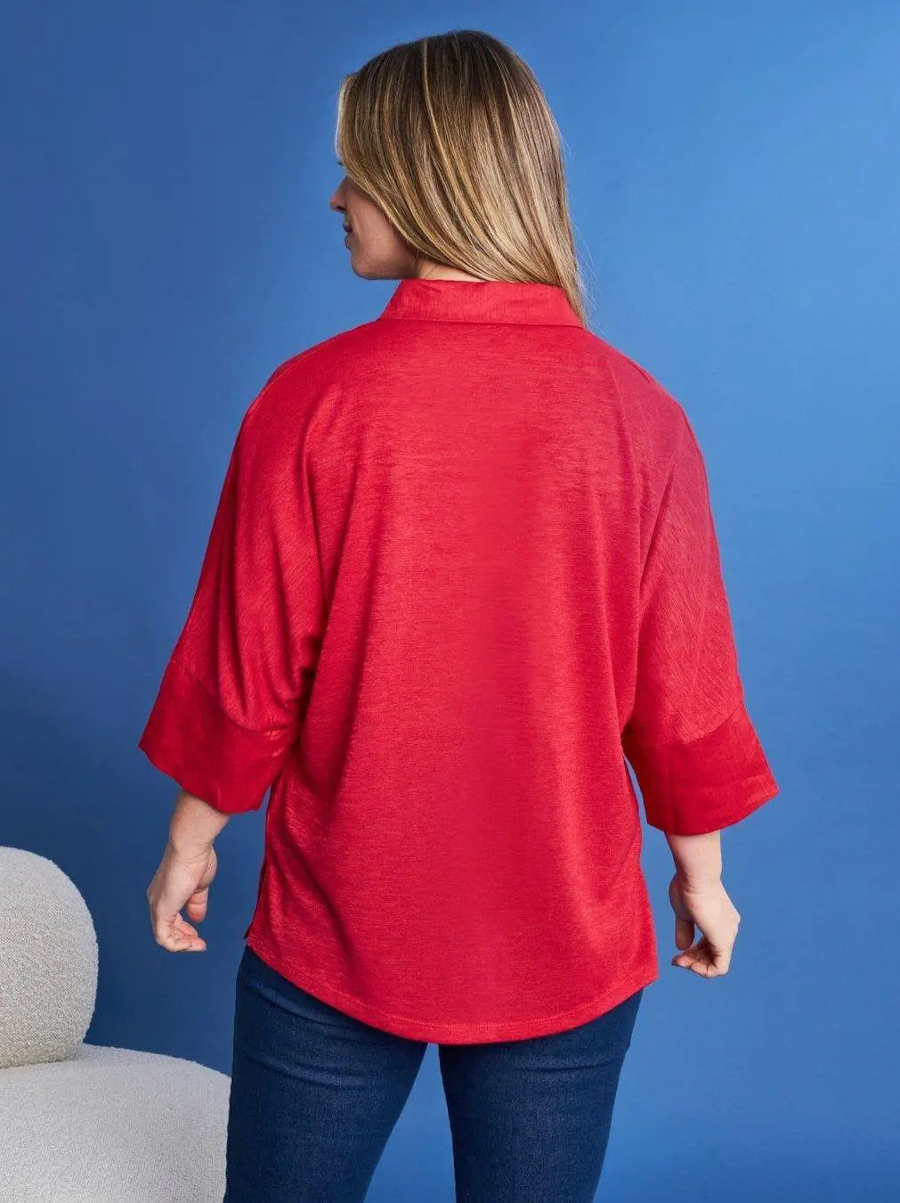 Solid color linen shirt with RED jersey back