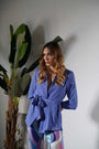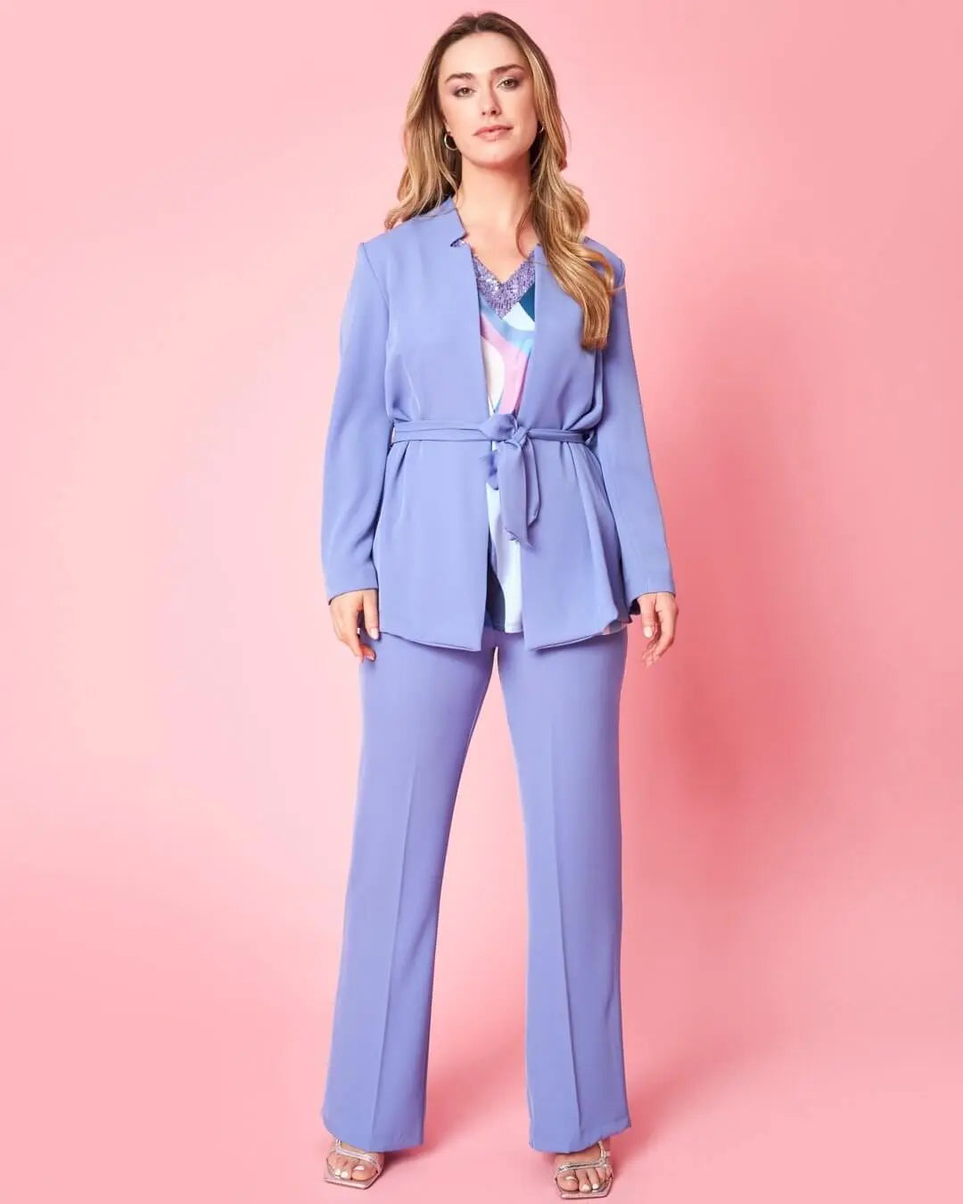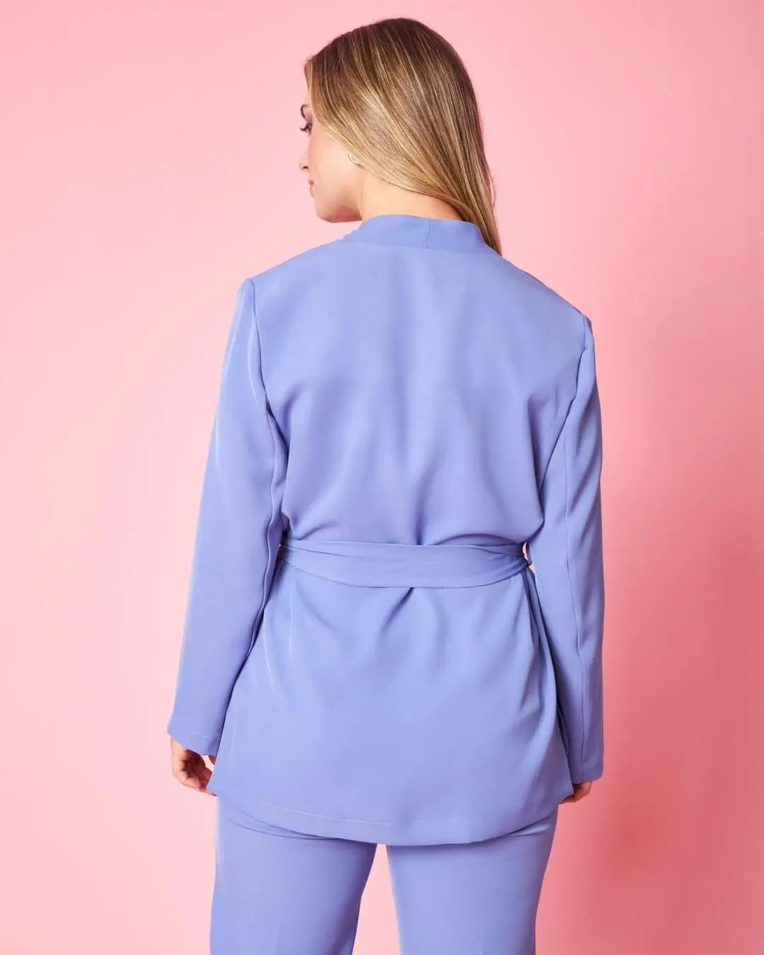 Solid color stretch cady duster coat with belt at the waist. LAVENDER