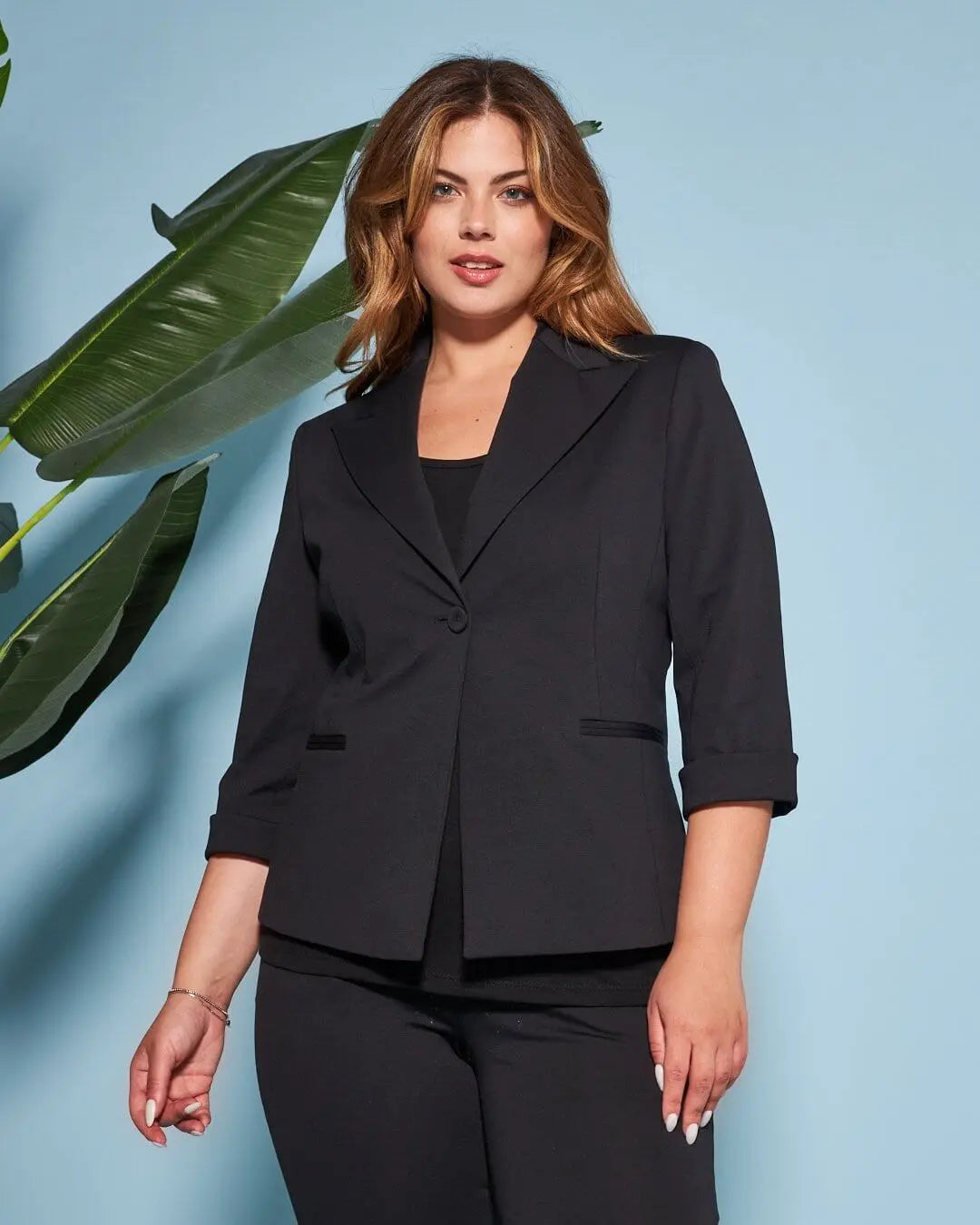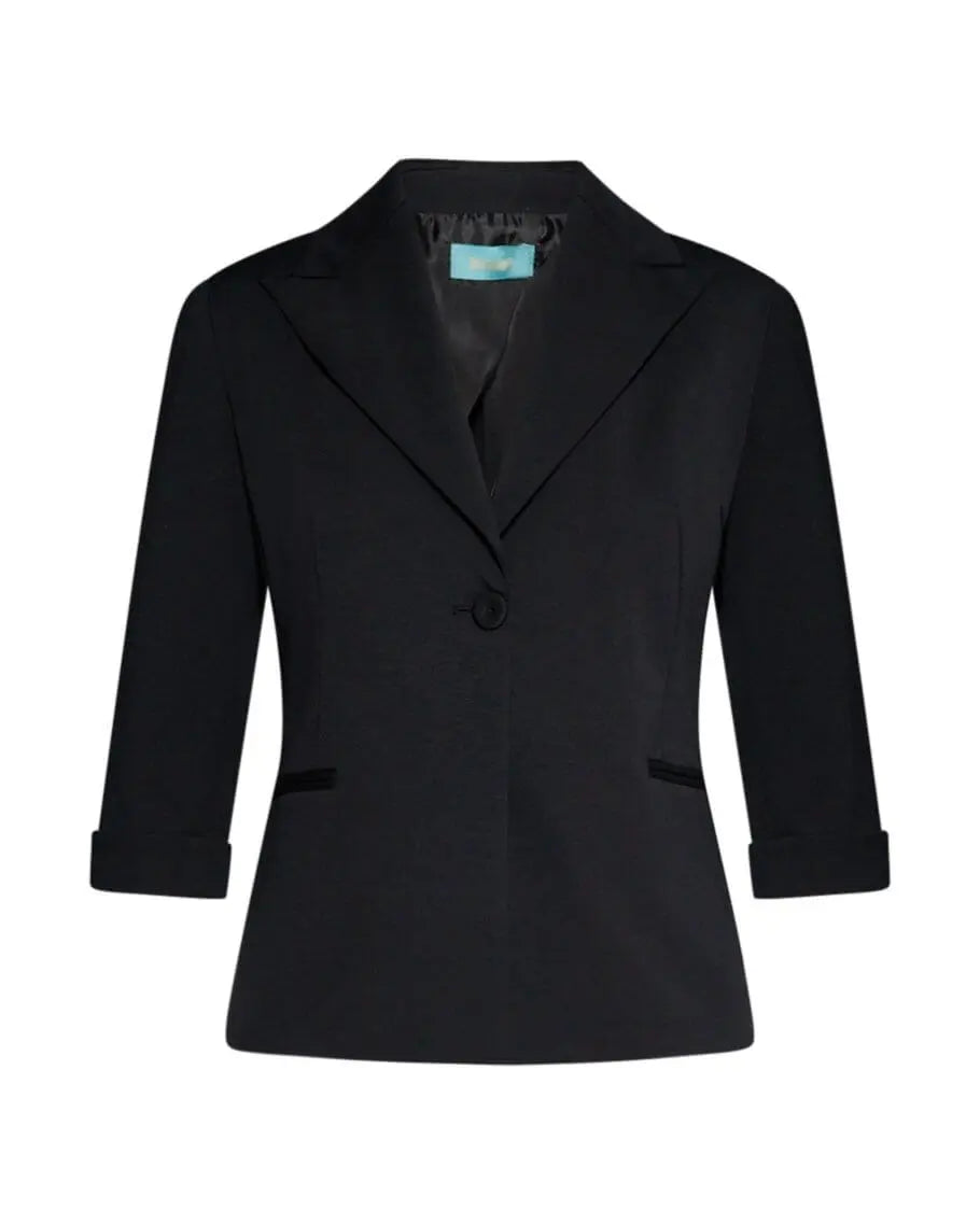 Short blazer without lapels in stretch Milanese stitch jersey of cotton blend BLACK