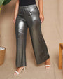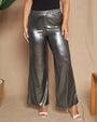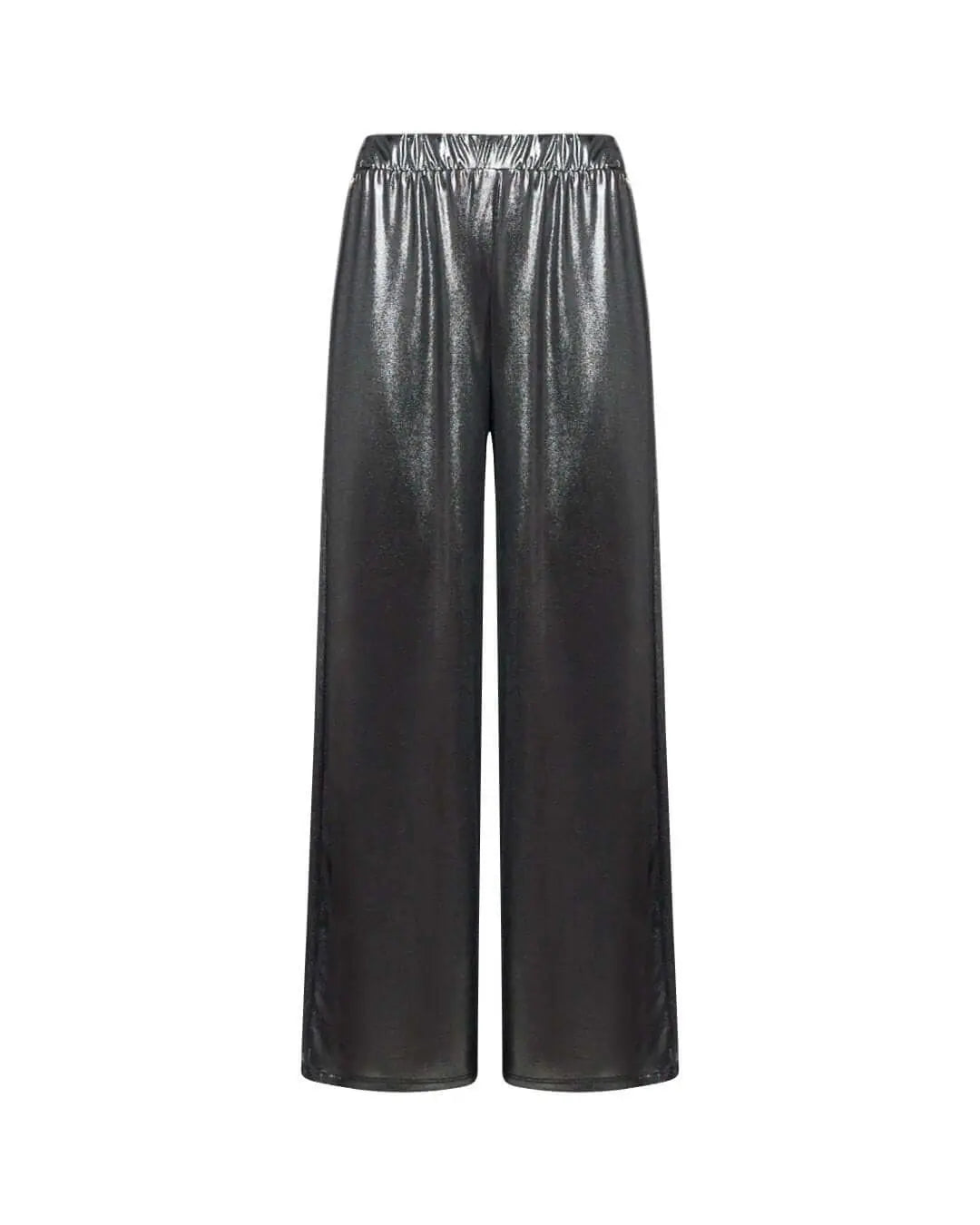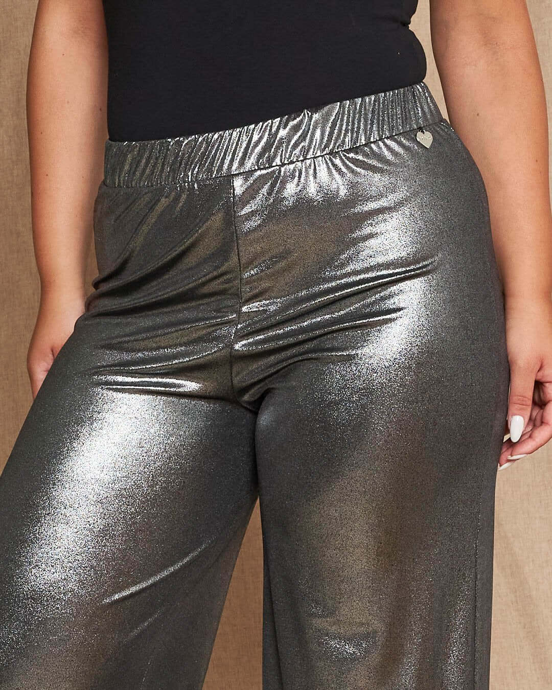 Comfortable palazzo pants in stretch lamé jersey with logo medallion. SILVER