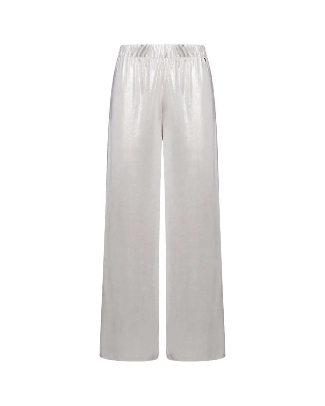 Comfortable palazzo pants in stretch lamé jersey with logo medallion. BEIGE