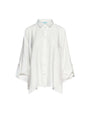 Long-sleeved shirt in solid color viscose blend canvas with buttoned slits and asymmetric hem WHITE