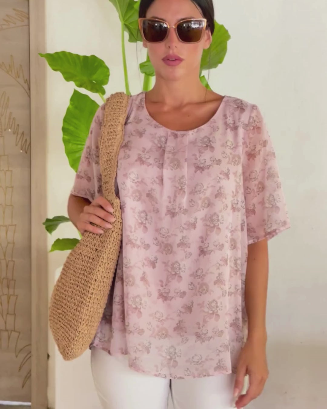 Geometric patterned blouse with crew neck and gathered ANTIQUE PINK