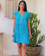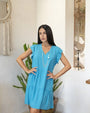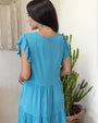 V-neck dress with ruffles and flounces TURQUOISE