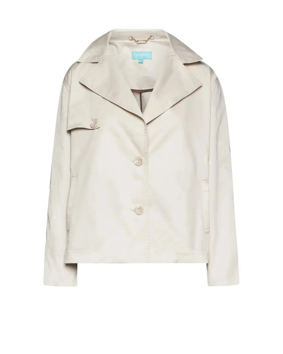 Short trench coat with side yoke, collar and lapel IVORY
