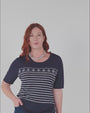 Sweater with sailor pattern, rhinestones and BLUE stripes