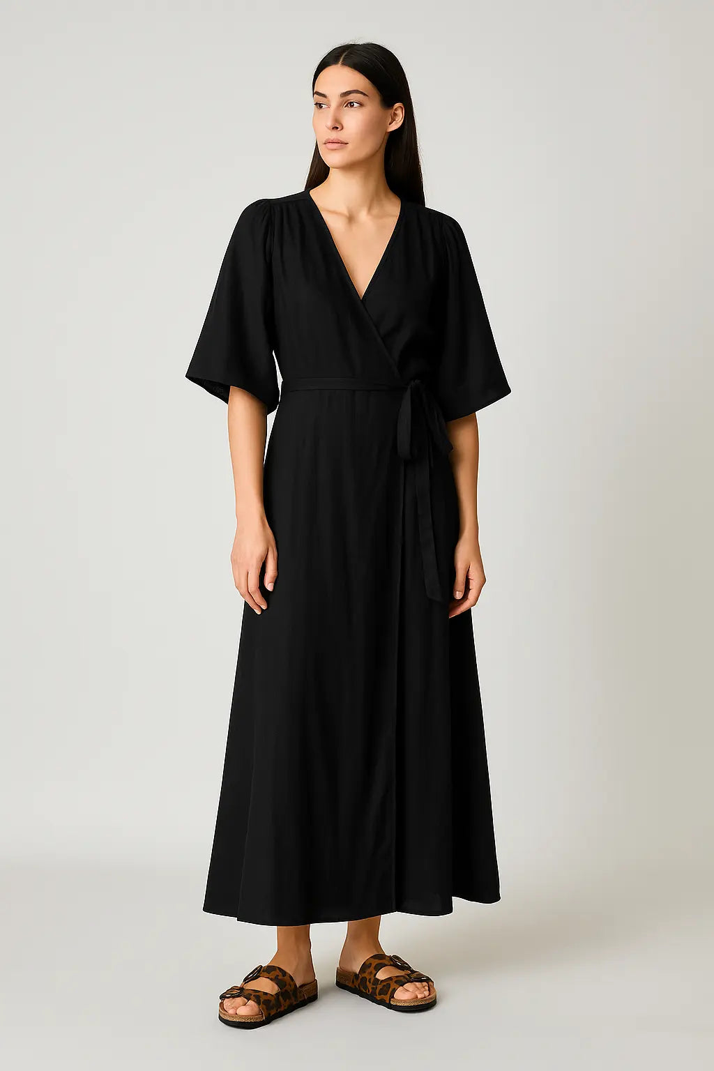 Modello wrap con chiusura a portafoglio e cinturina da annodare in vita