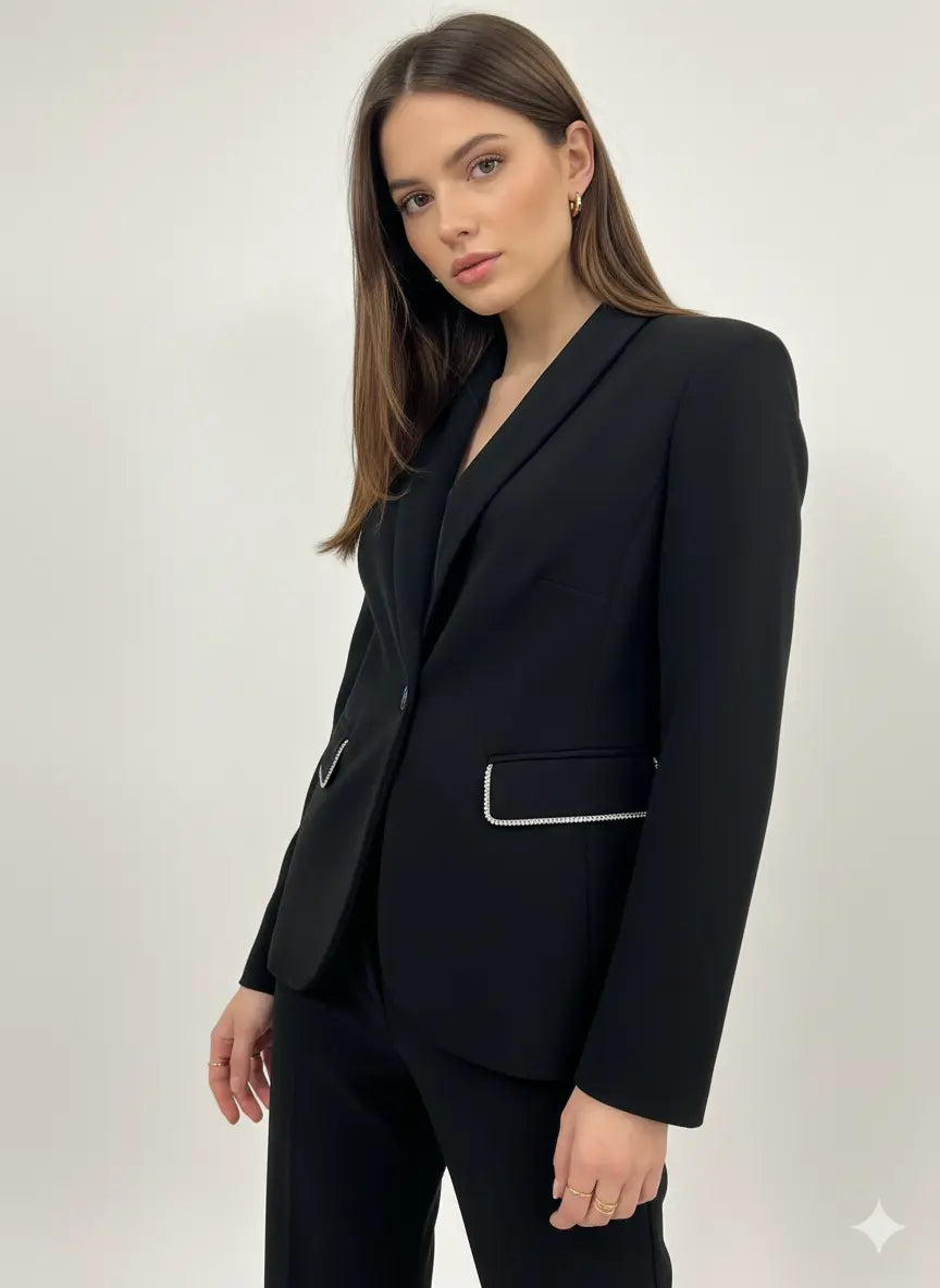Giacca monopetto con profili strass