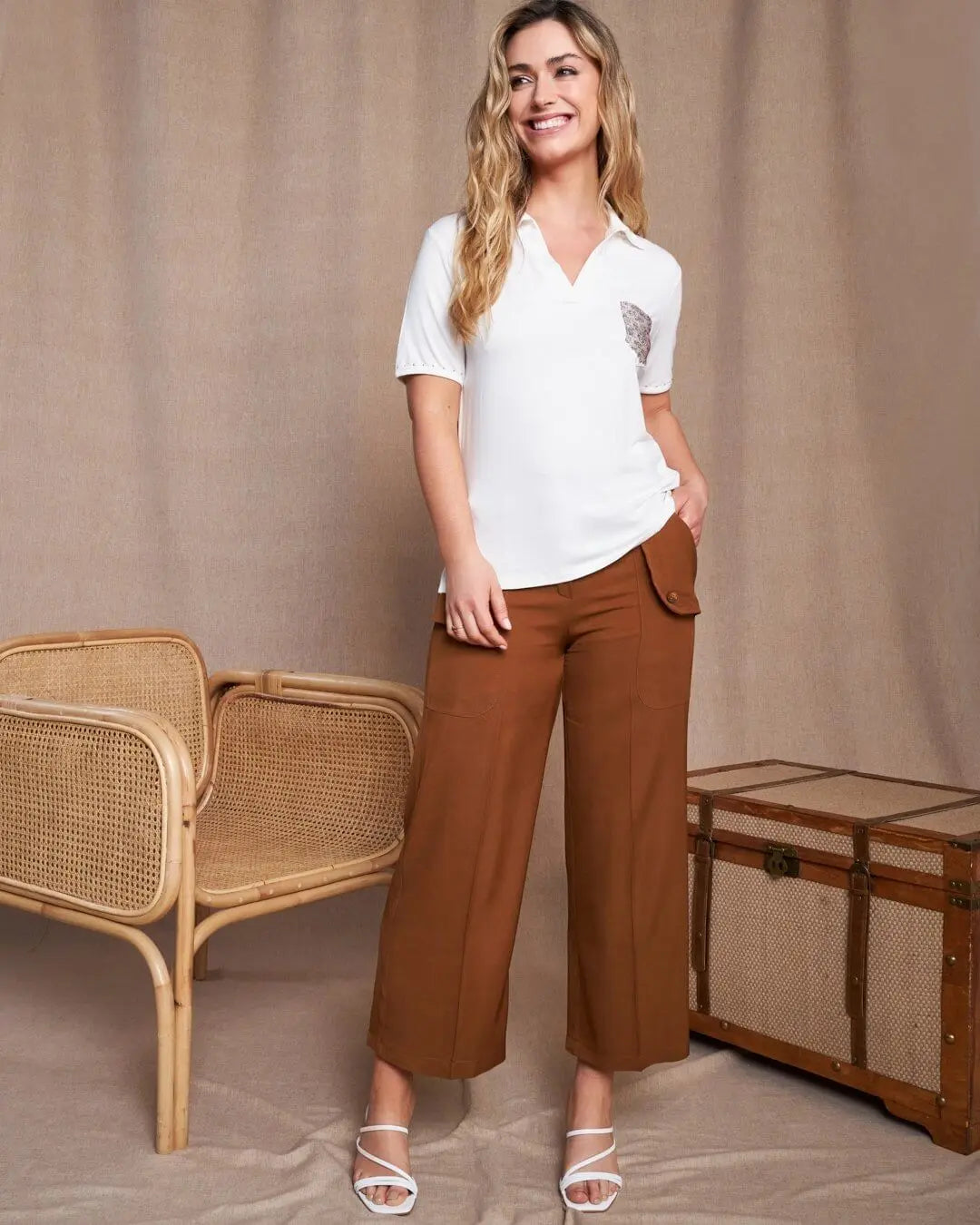 Polo de jersey de viscosa elástica con bolsillo animalier con tachuelas BLANCO