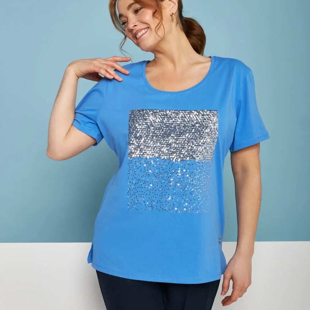 Camiseta de jersey de algodón elástico con aplicaciones de lentejuelas en la parte delantera LAVANDA