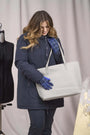 Bolso shopper grande de piel ecológica granulada con logotipo en la parte delantera GRIS PERLA