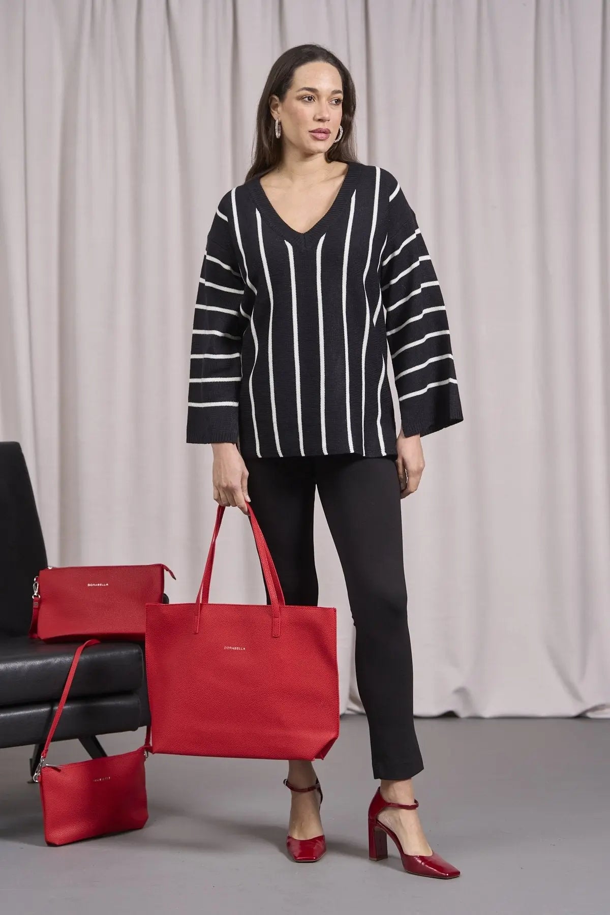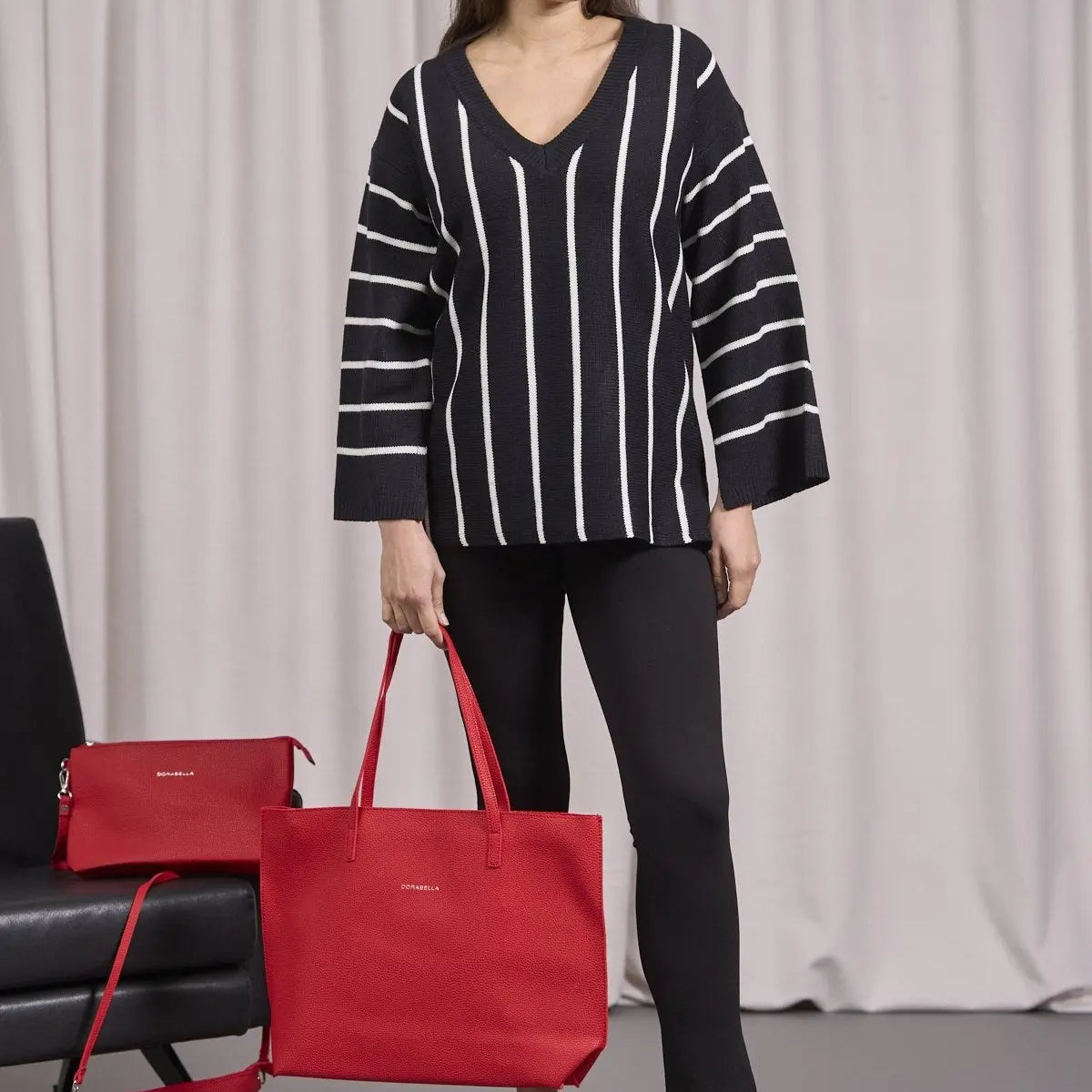 Bolso shopper grande de piel ecológica granulada con logotipo en la parte delantera RIBES