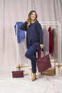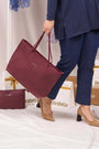 Bolso shopper grande de piel ecológica granulada con logotipo en la parte delantera BURDEOS