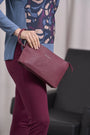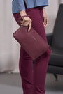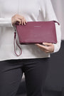 Clutch de piel ecológica granulada con logo en la parte delantera y correa de muñeca BURDEOS