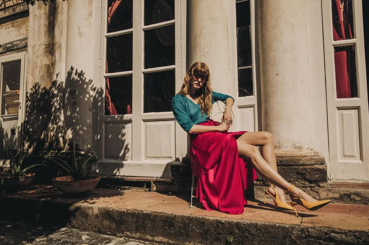 Falda con volantes y tirante FUXIA