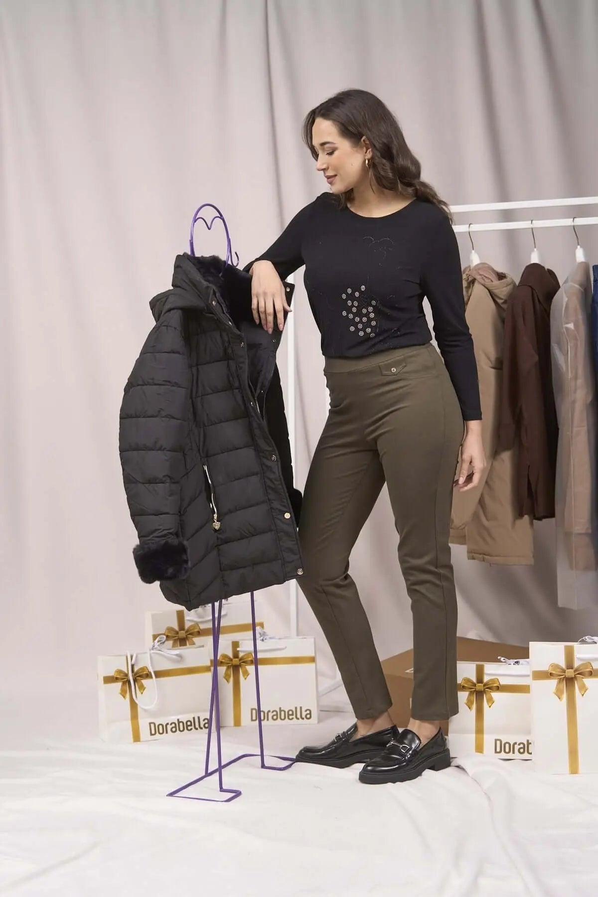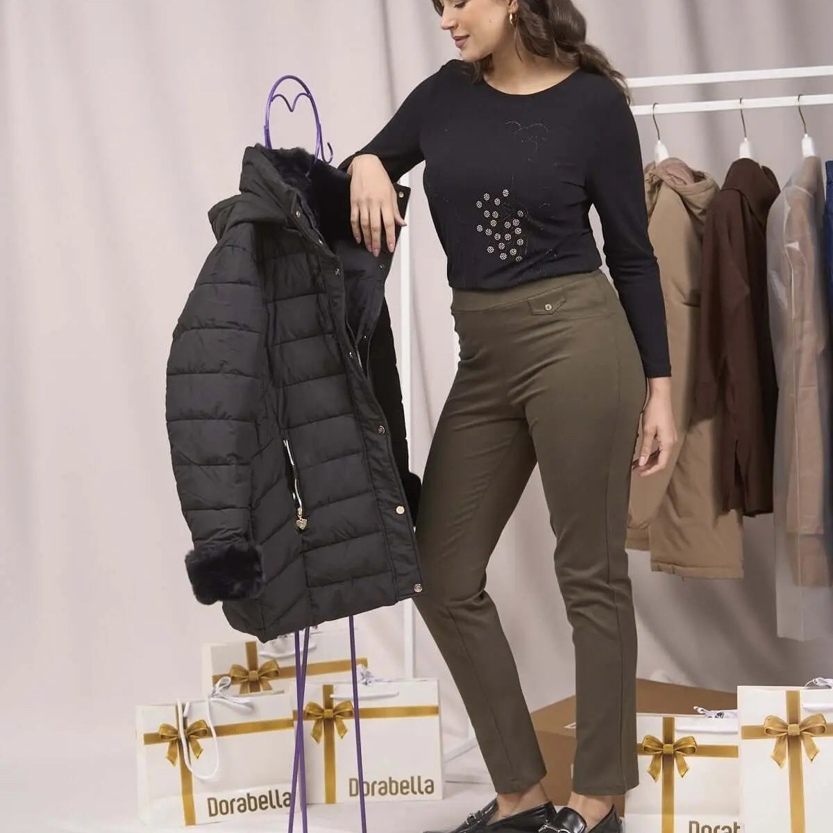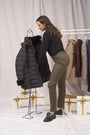 La modelo mide 1,75 m y usa talla M.