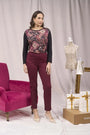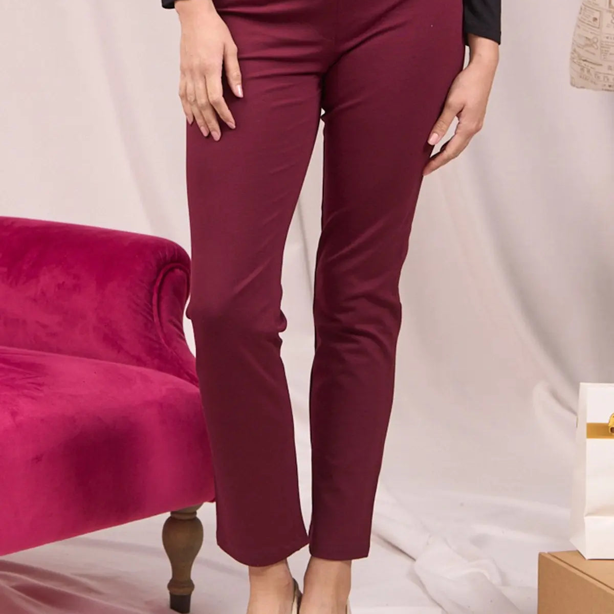 Pantalón con cintura elástica y tapeta de botones BURDEOS