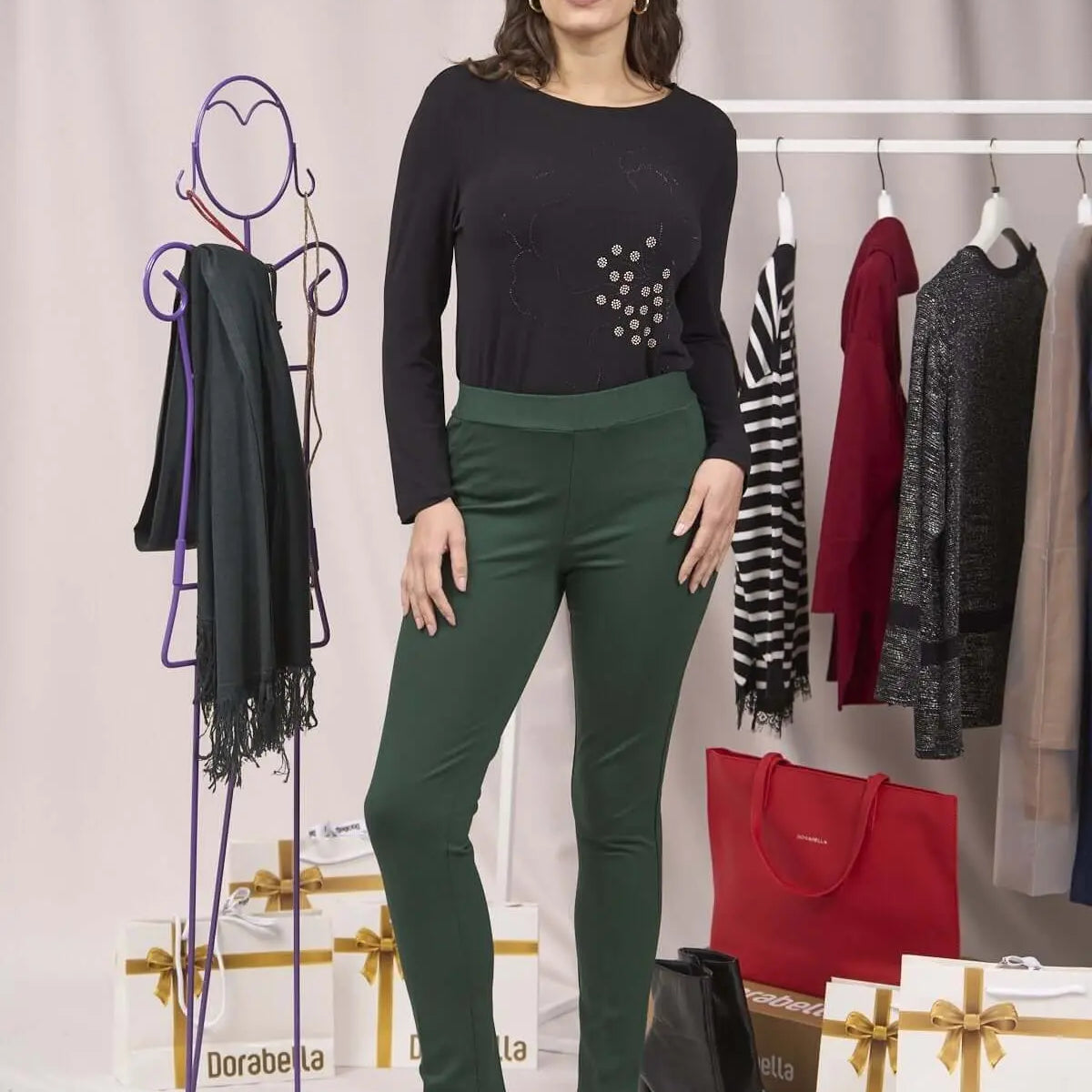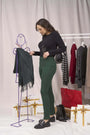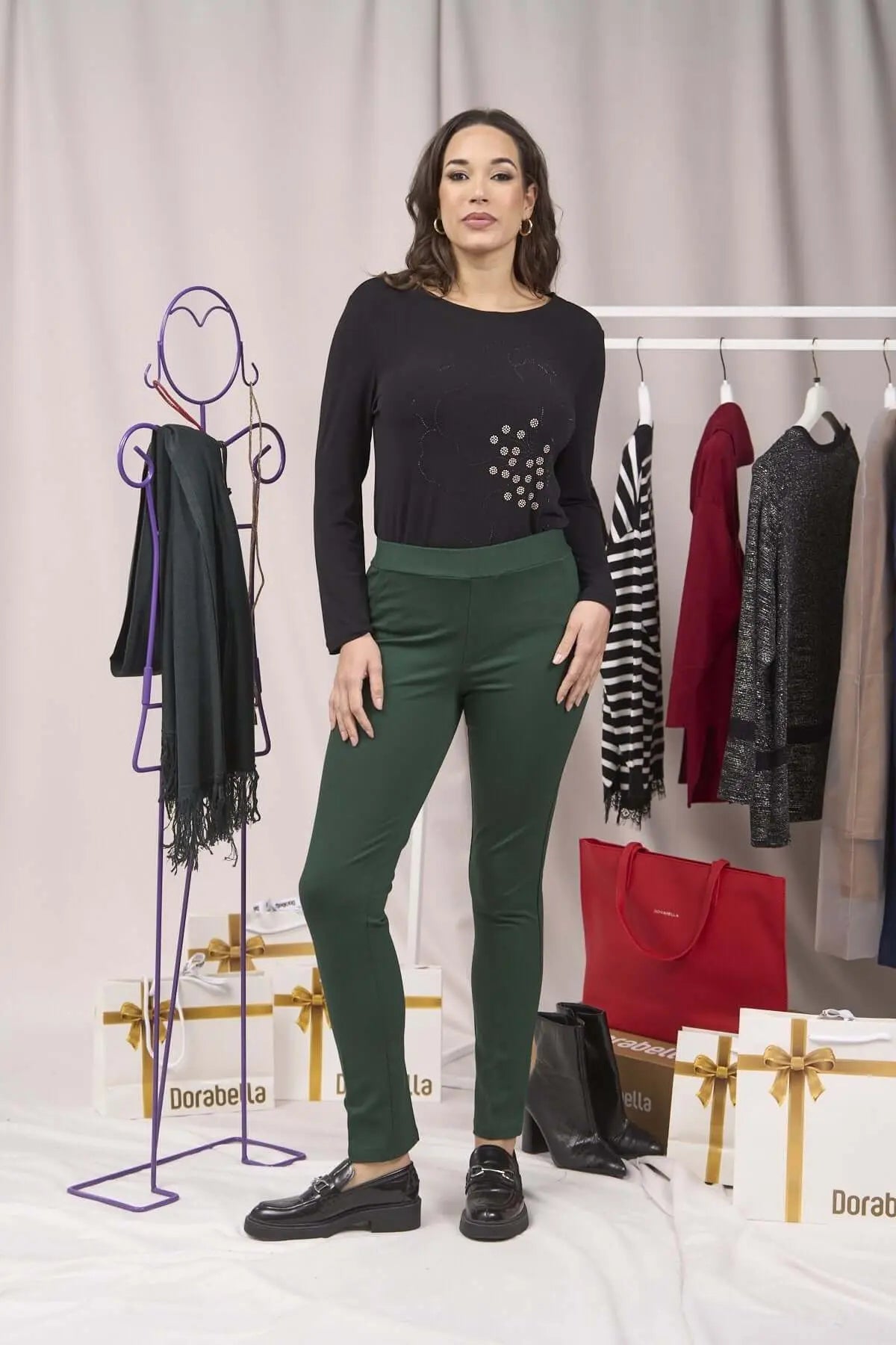 Pantalón slim de viscosa con canesú trasero VERDE BOSQUE