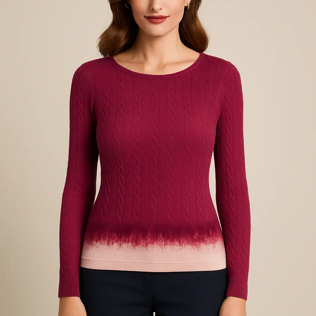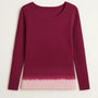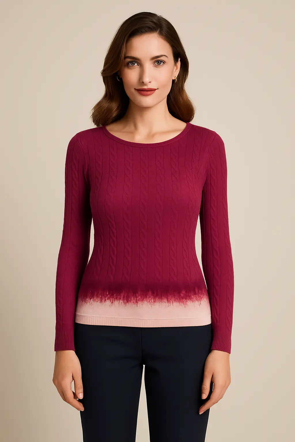 Maglia a manica lunga in maglia rasata bordeaux con sfumatura rosa sul fondo. Girocollo morbido, perfetta per look casual e femminili.