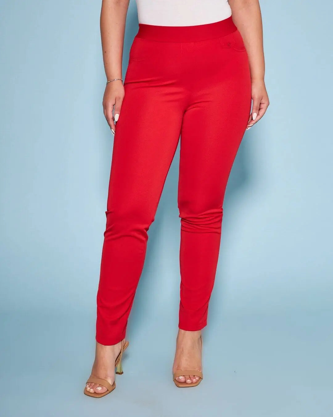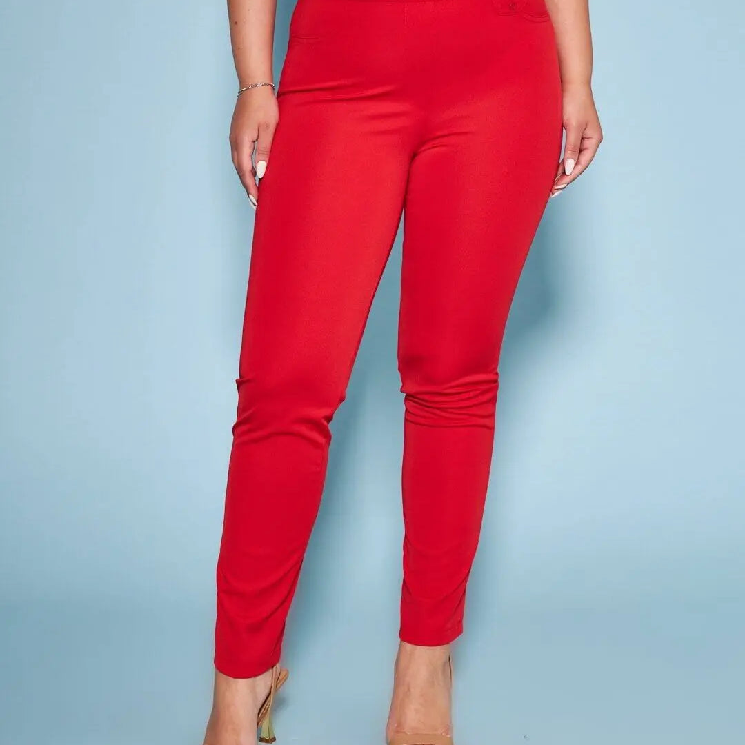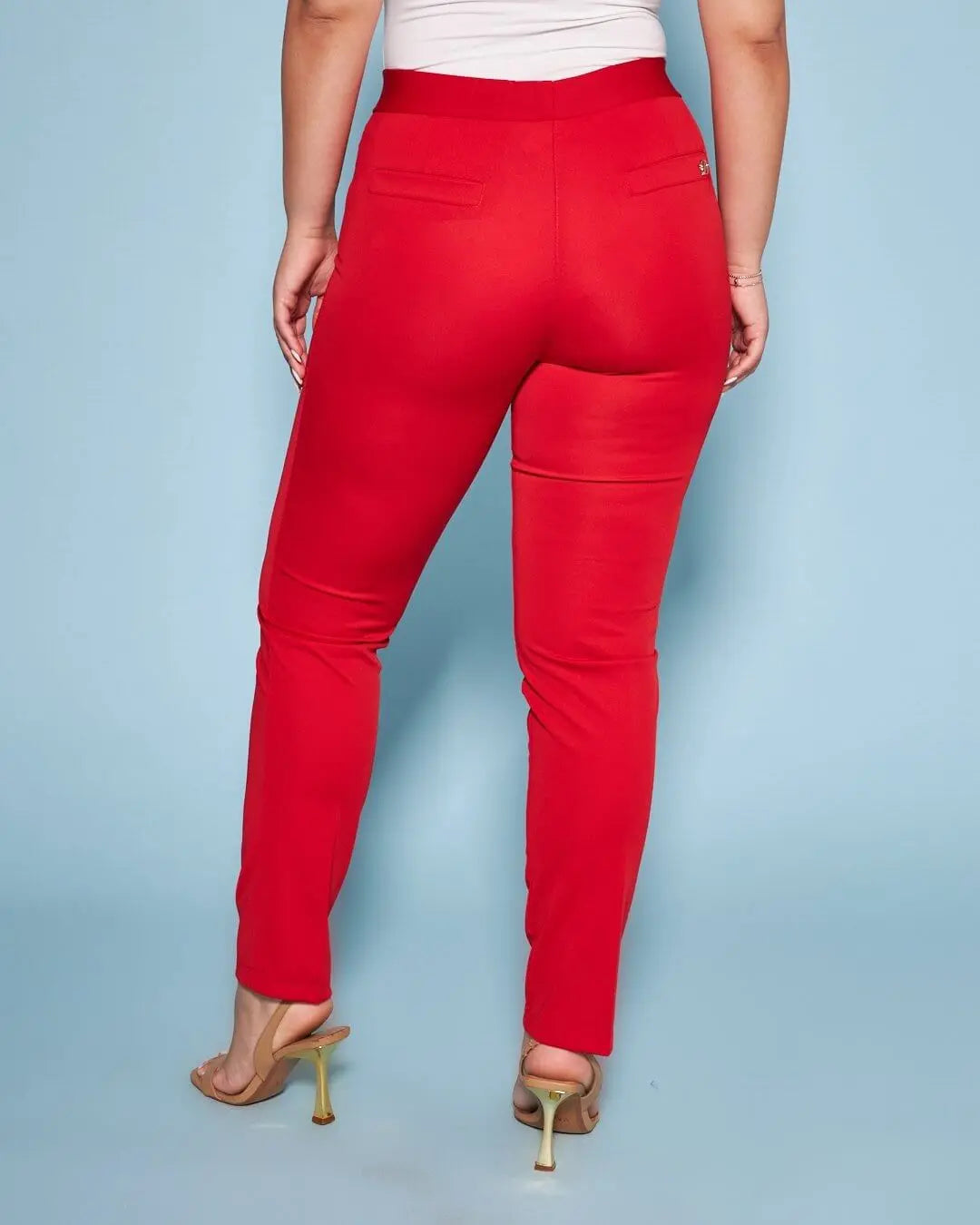 Pantalón básico con flecos traseros ROJO