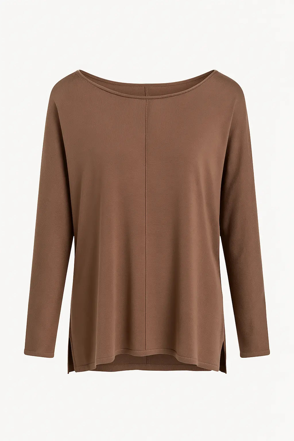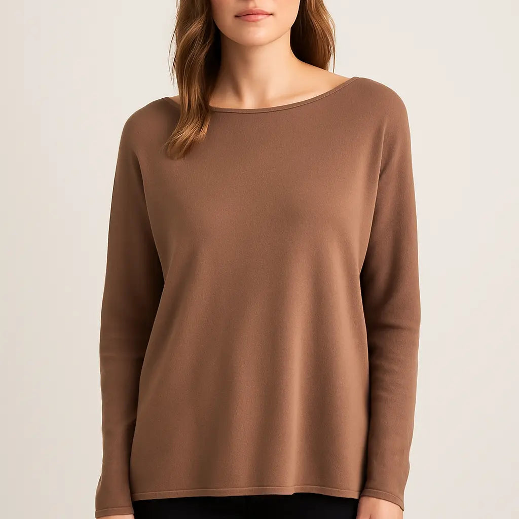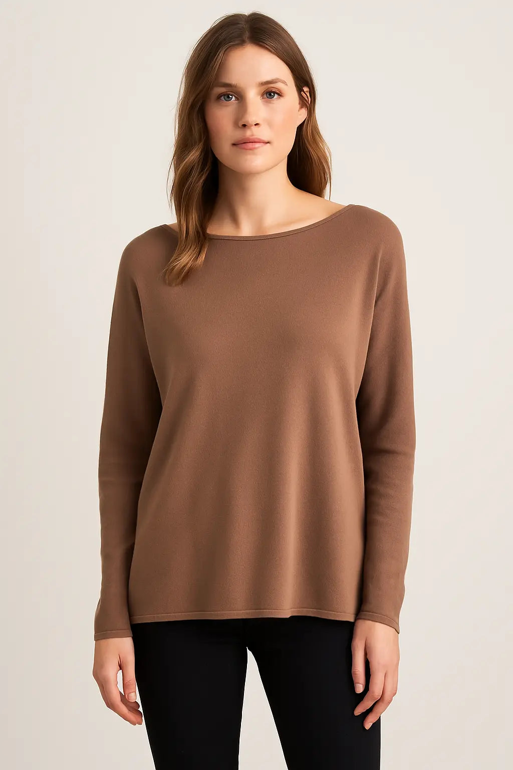 Maglia scollo madonna tinta unita in viscosa Cammello