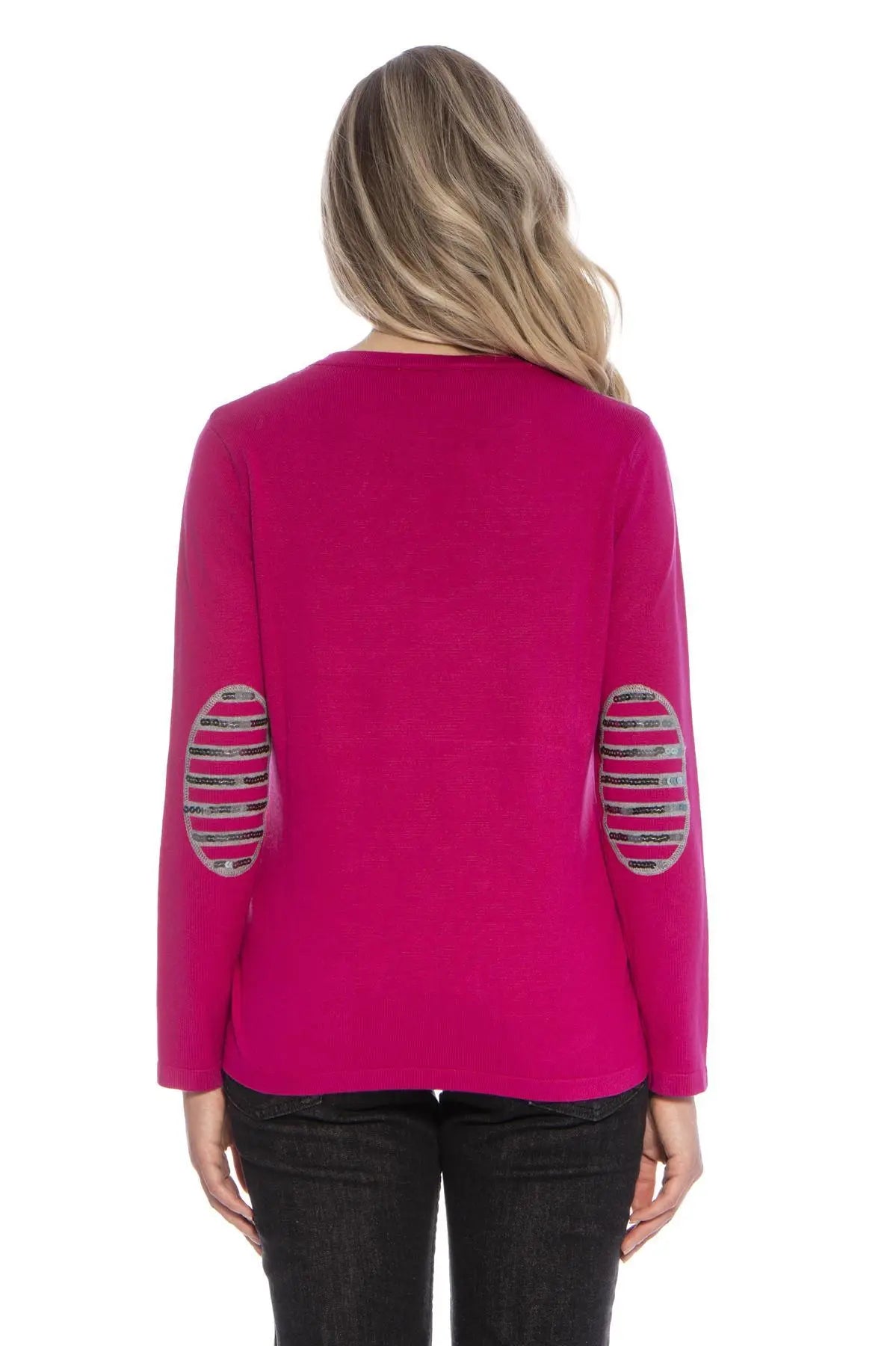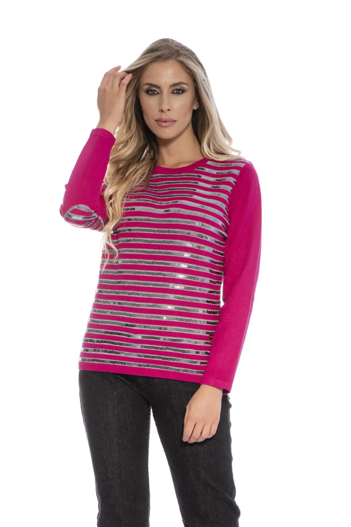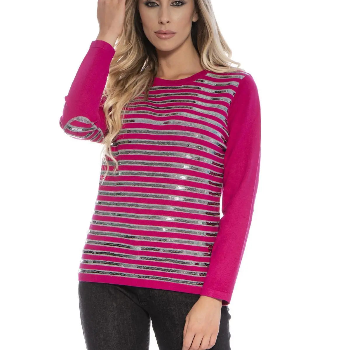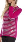 Maglia fantasia a righe e paillettes LIGHT GREY-FUXIA