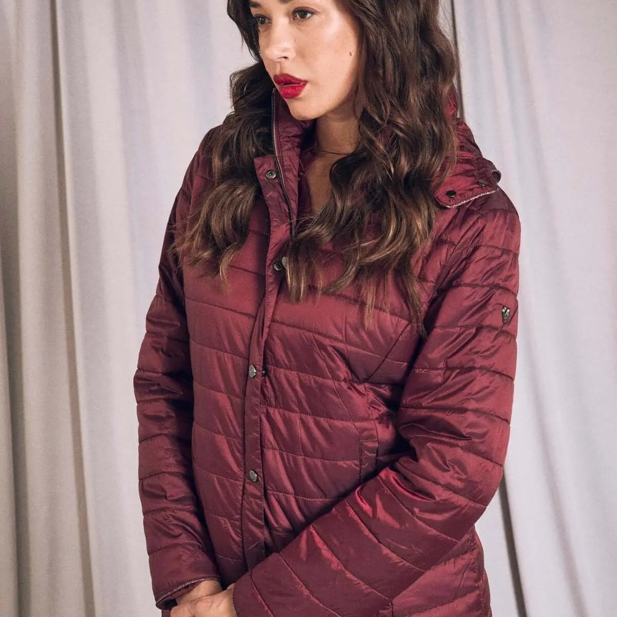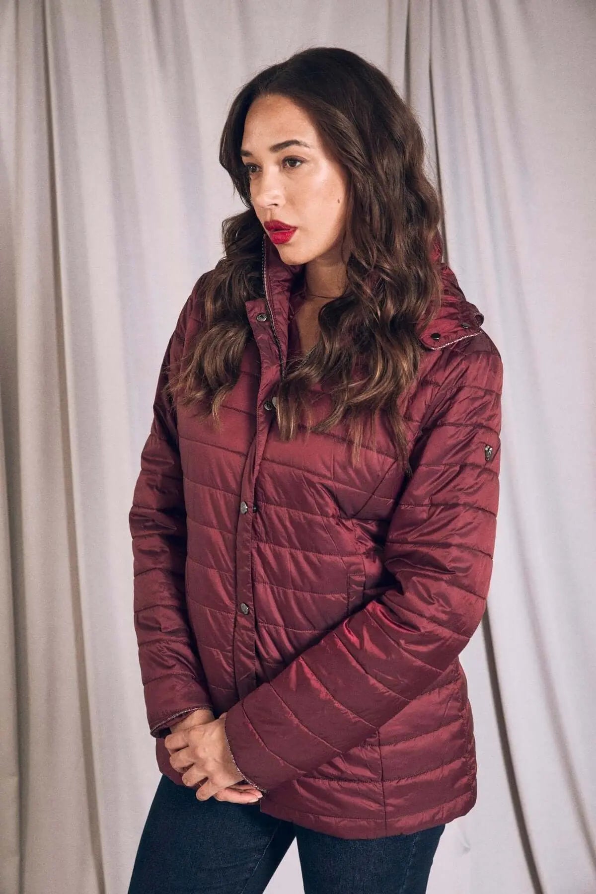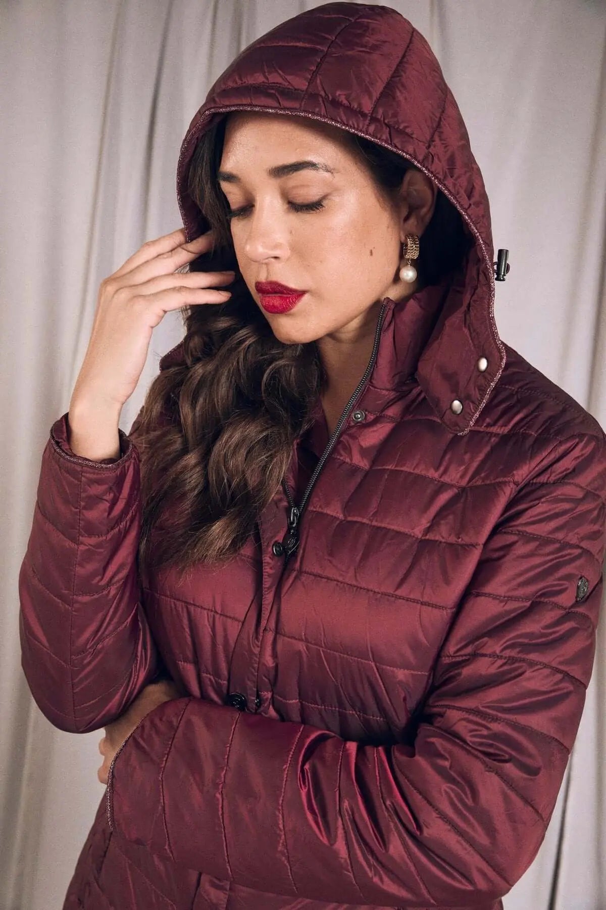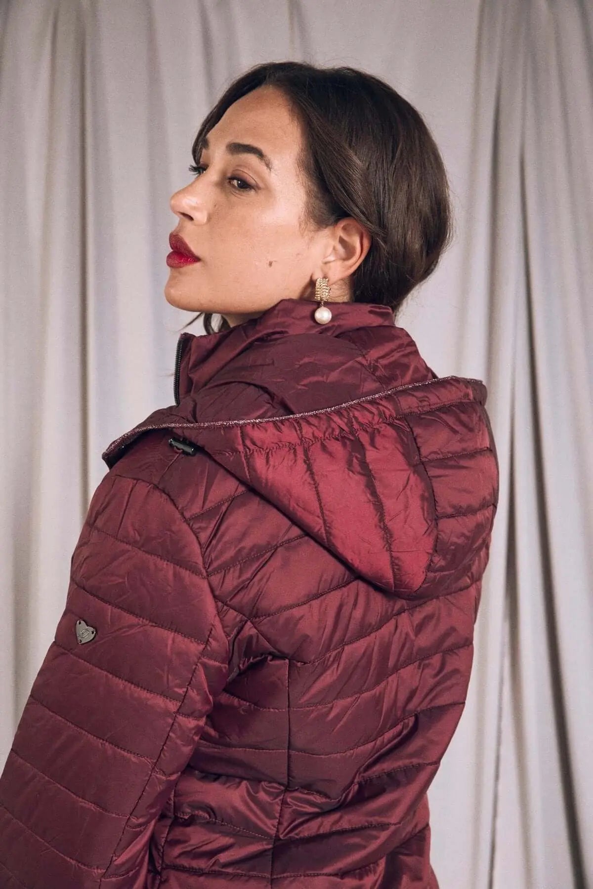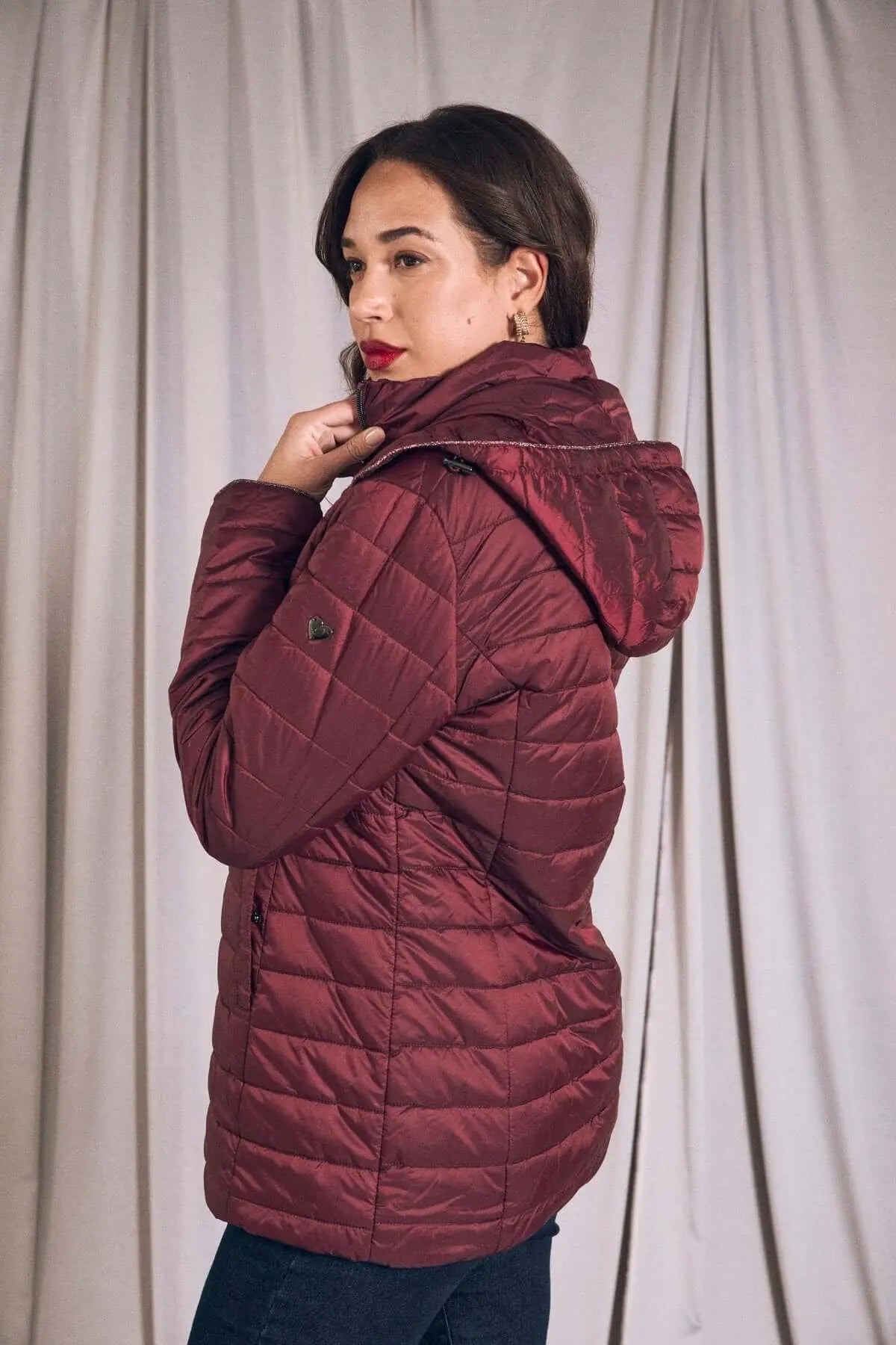 Chaqueta ligera de plumón de nailon acolchado con capucha color BORGOÑA