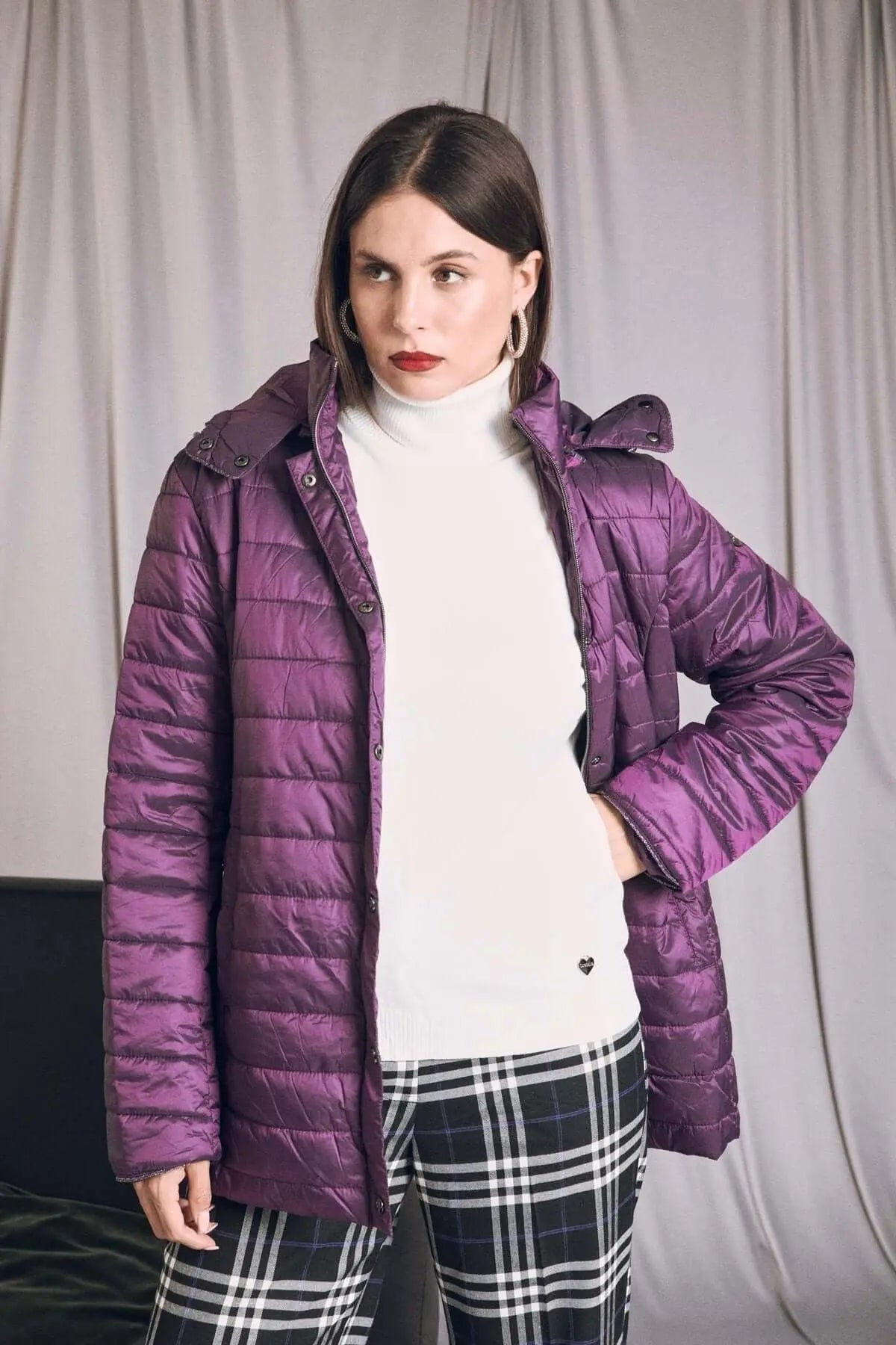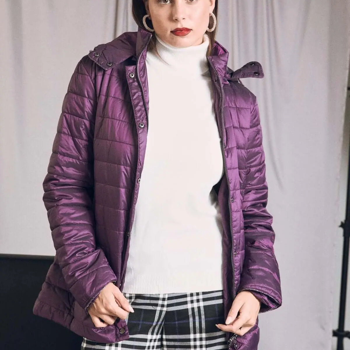 Chaqueta ligera de plumón de nailon acolchado con capucha PLUM