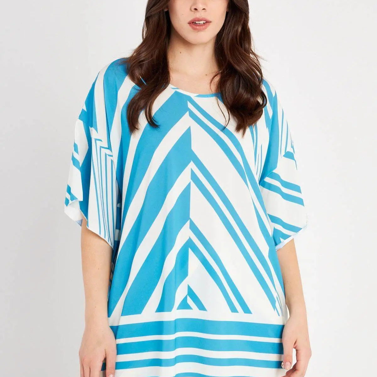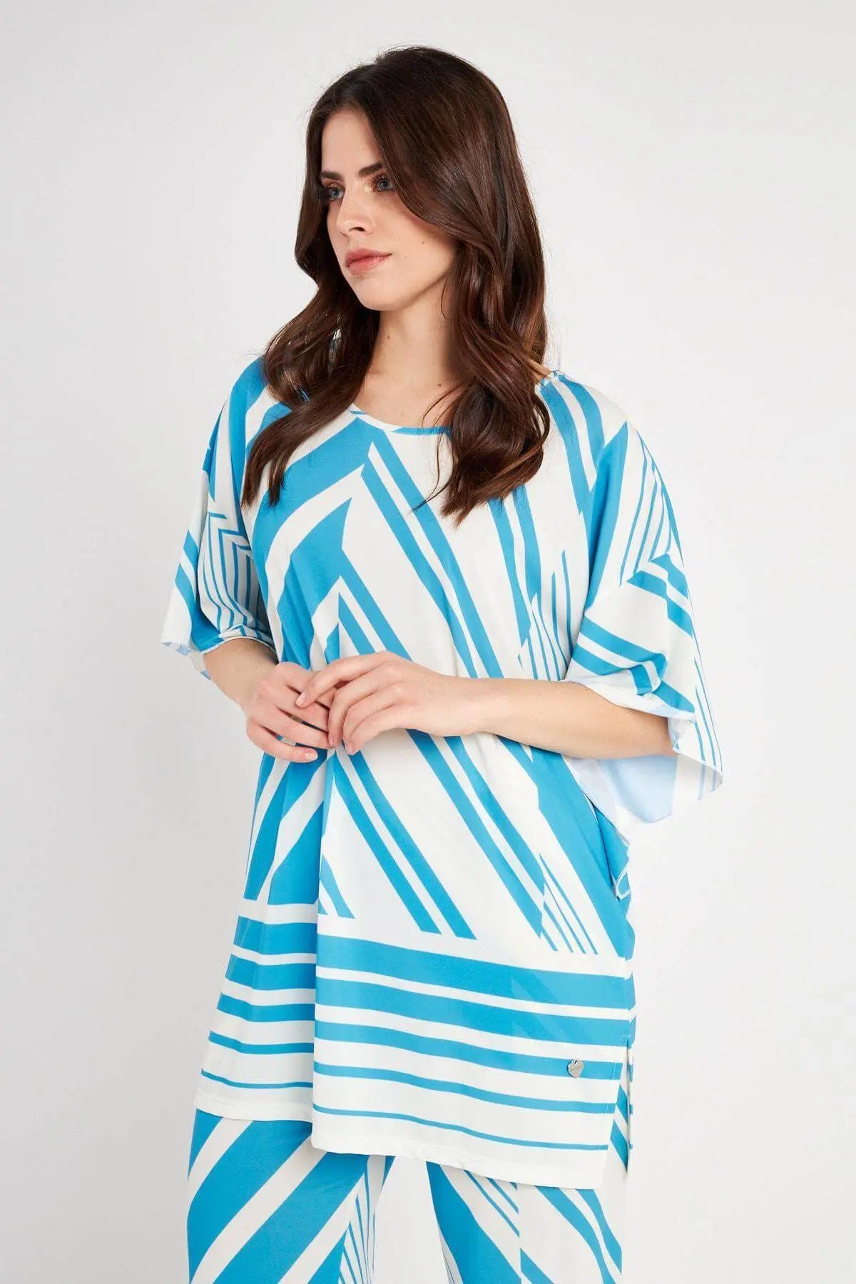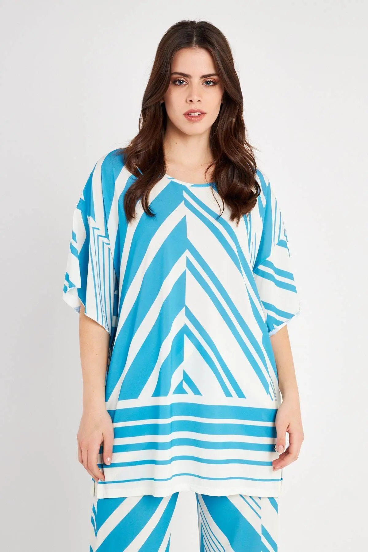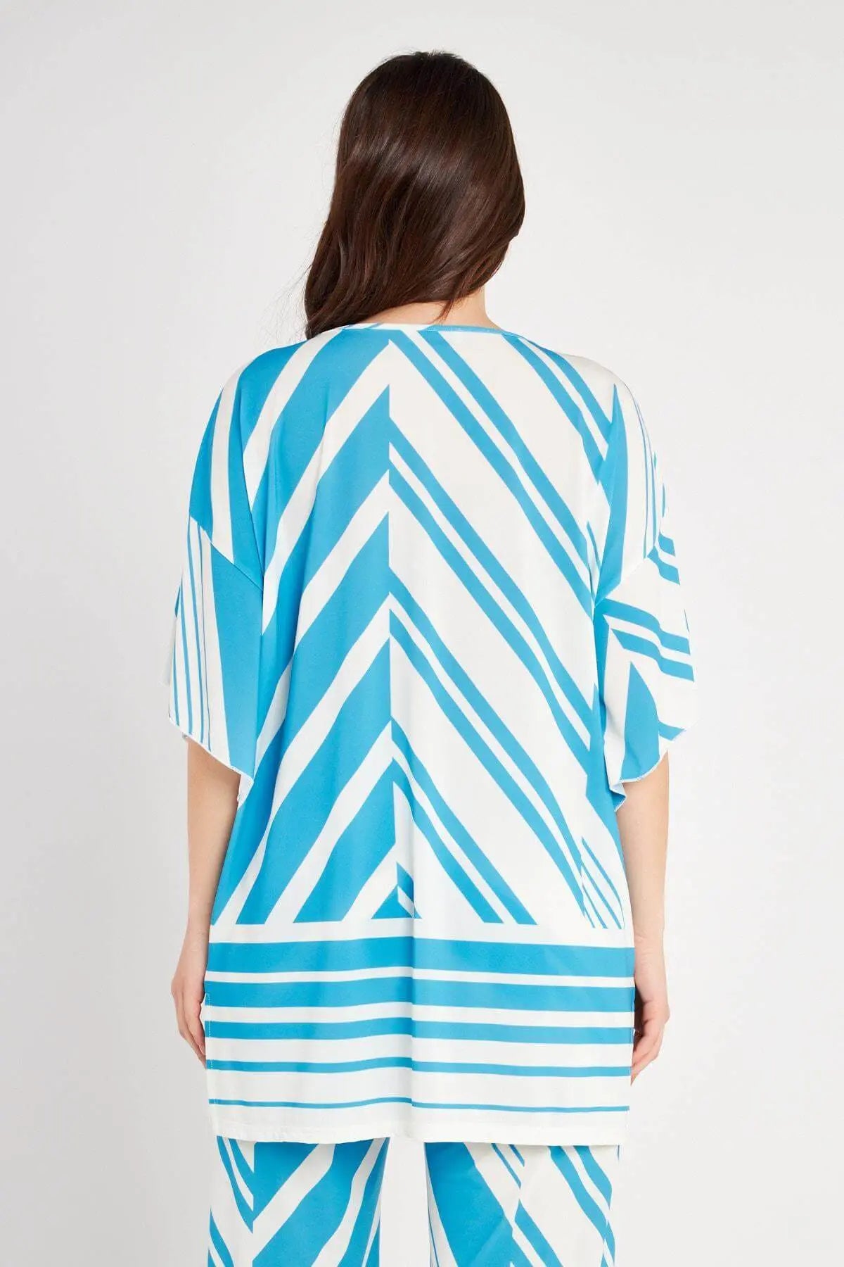 CHAQUETA CON ESTAMPADO GEOMÉTRICO COLOR TURQUESA-CREMA