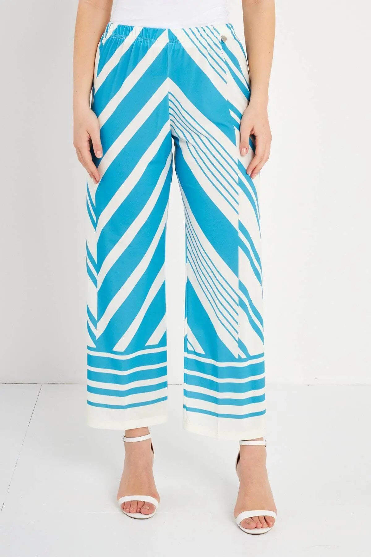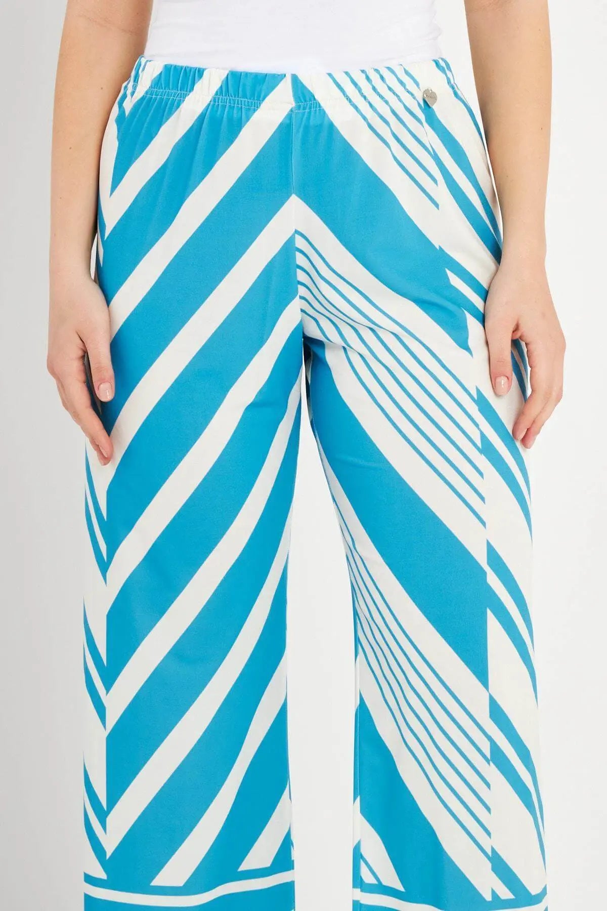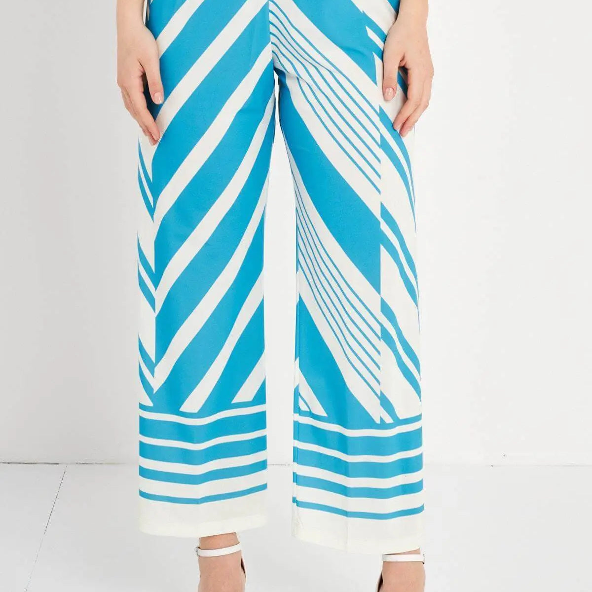 PANTALONES CON ESTAMPADO GEOMÉTRICO COLOR TURQUESA-CREMA