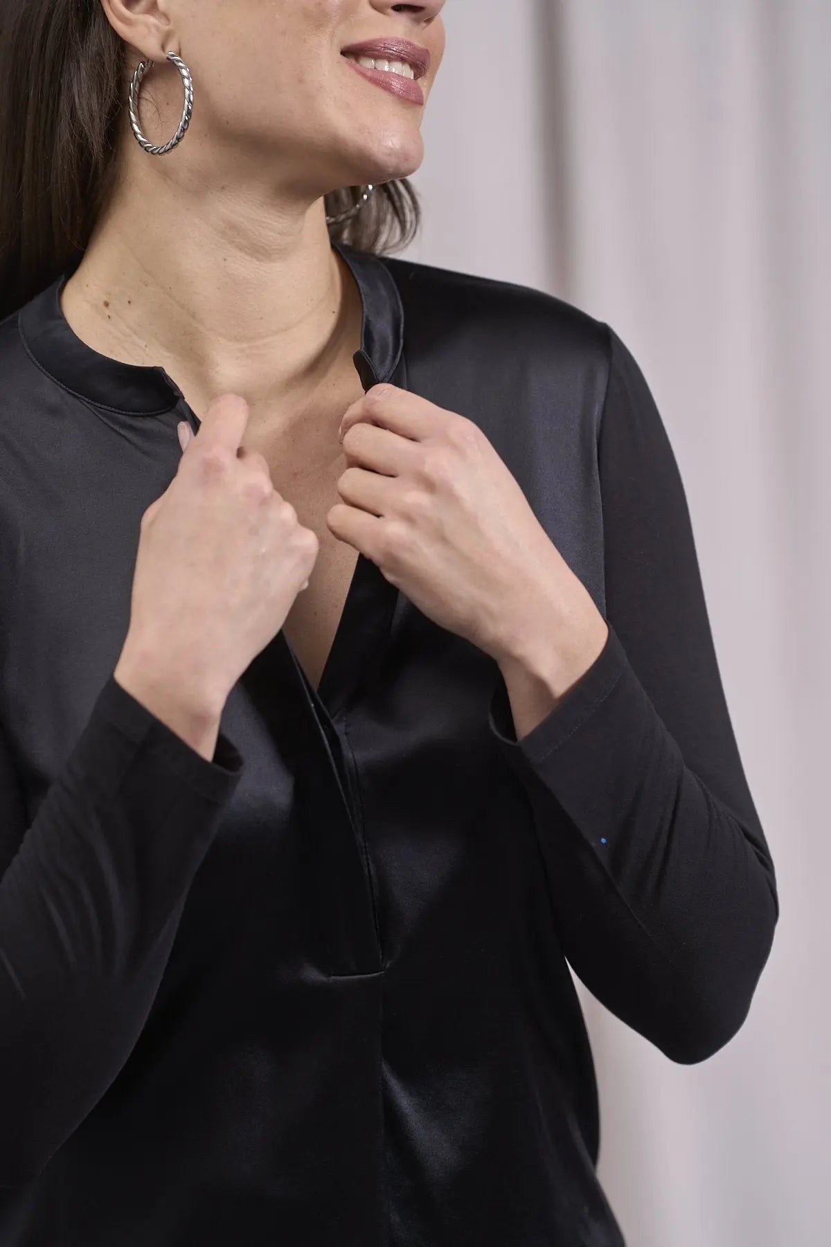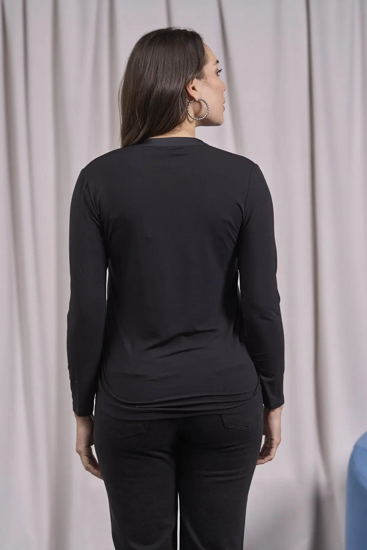 Suéter bimaterial con cuello ribeteado NEGRO