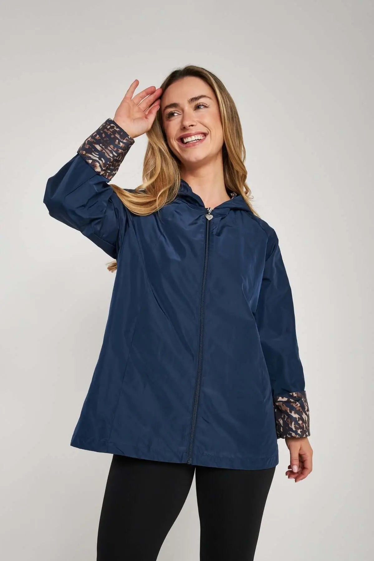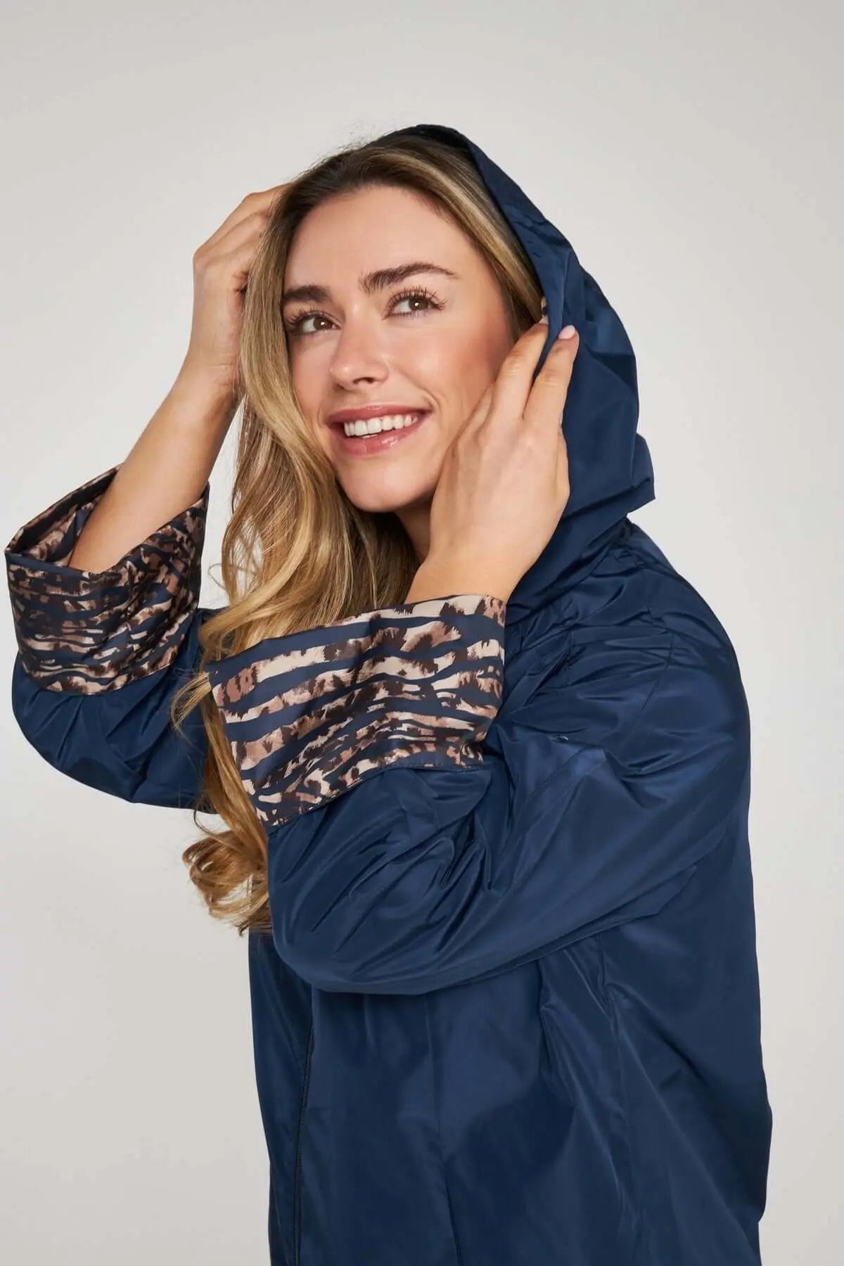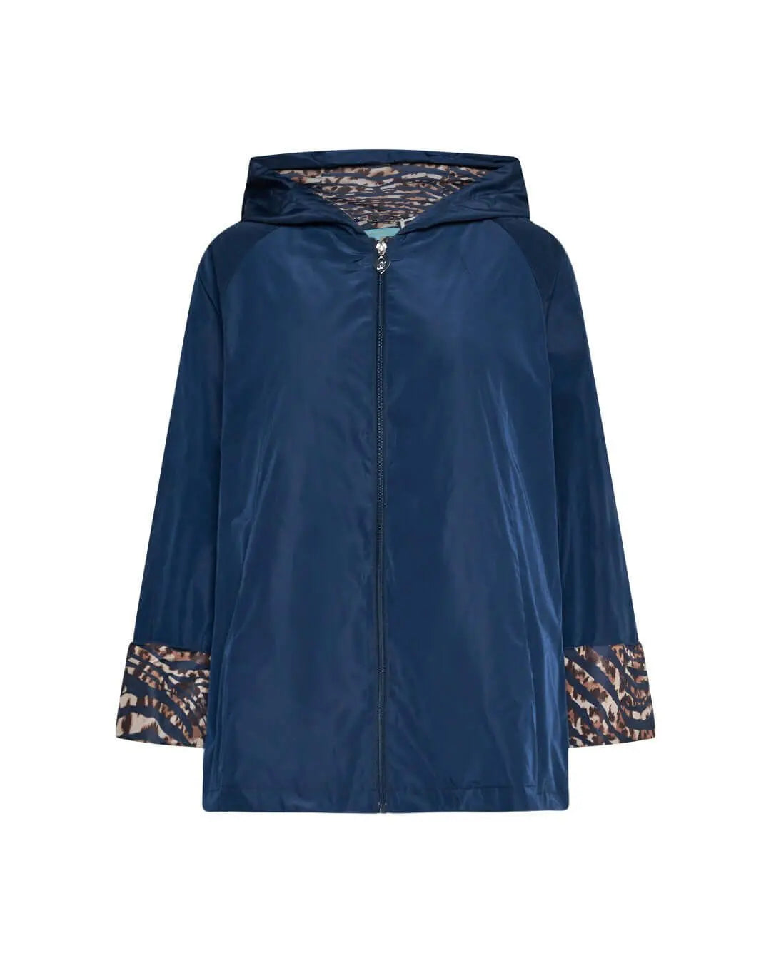 Chaqueta de nailon con capucha y forro estampado AZUL